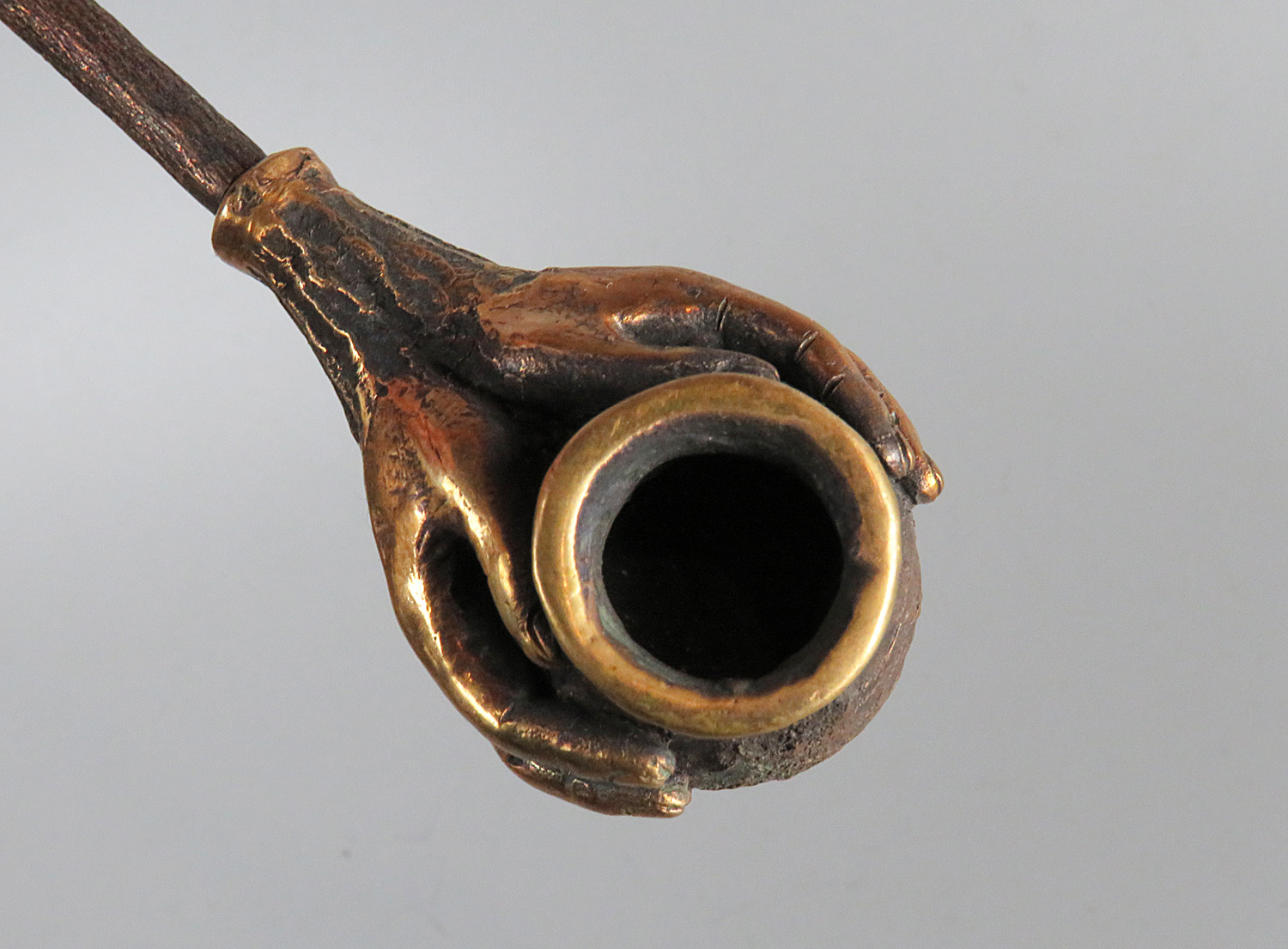 To make this item, a wax model was cut out by hand. Then, using the lost wax method, bronze parts were cast.