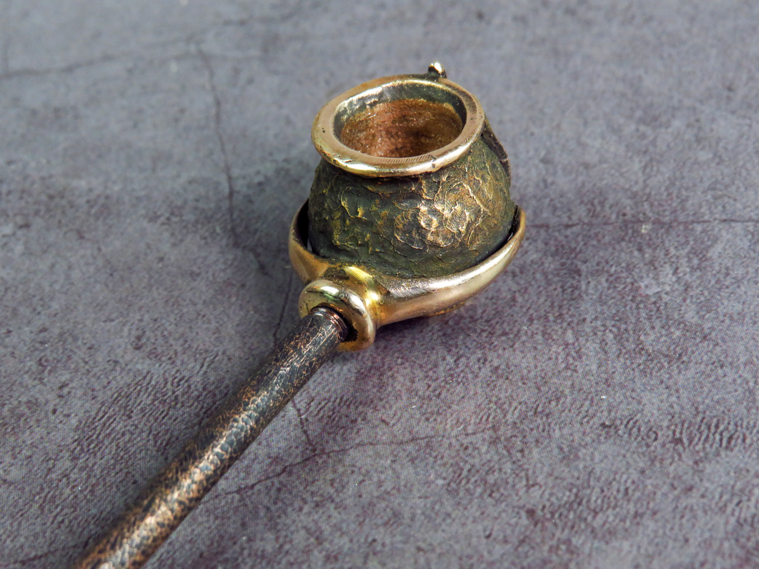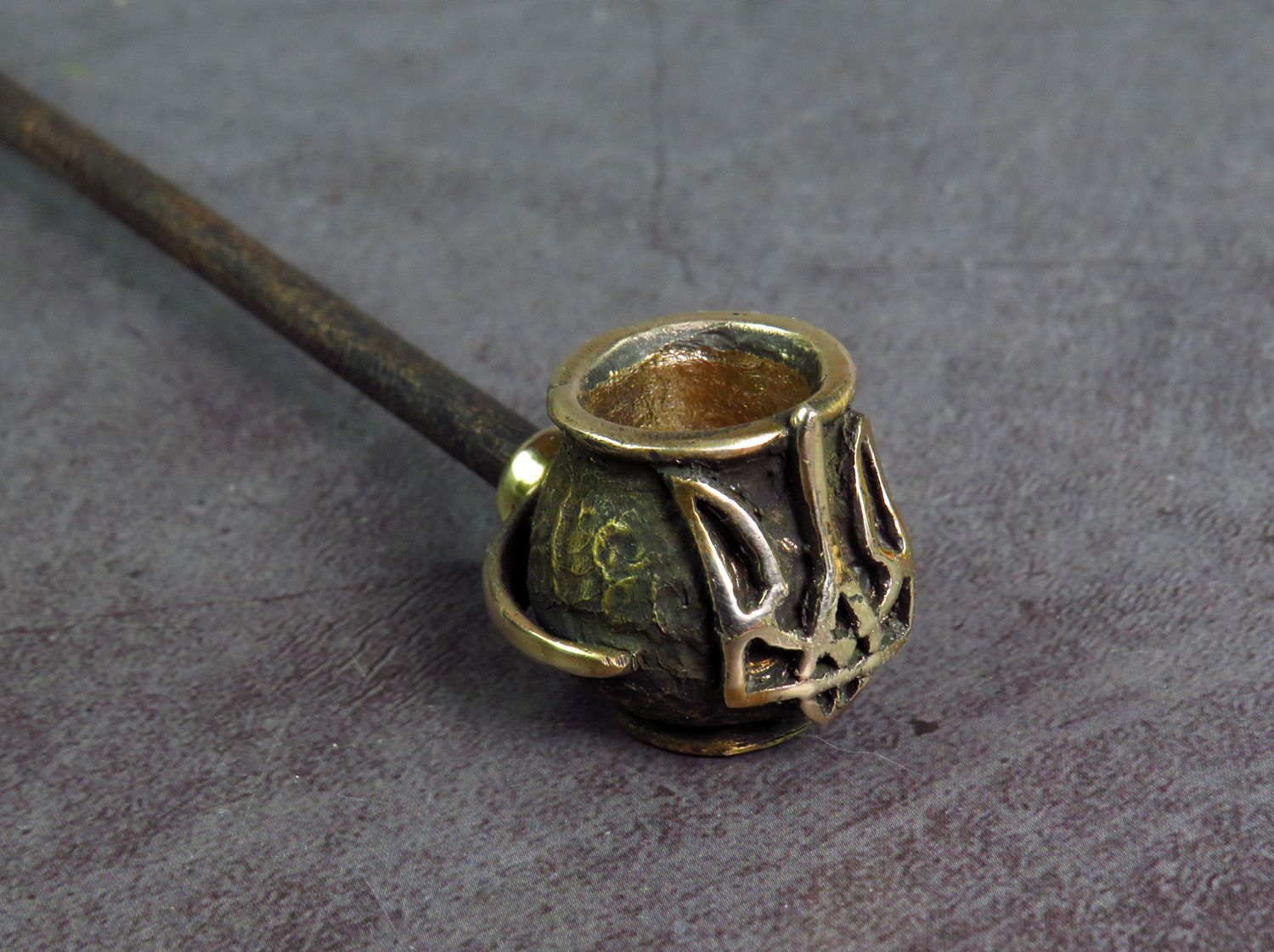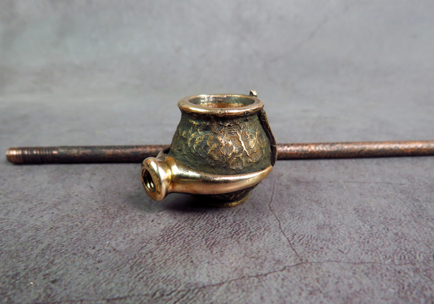 Bronze pipe-pot with a trident on its side. This is a simple and concise pipe for anyone who loves this wonderful country and wants to make a memorable gift to themselves or their Ukrainian friends. The mouthpiece is made of copper, it is screwed on, can have a length (from 3 to 30 cm) and a shape at the request of the buyer.