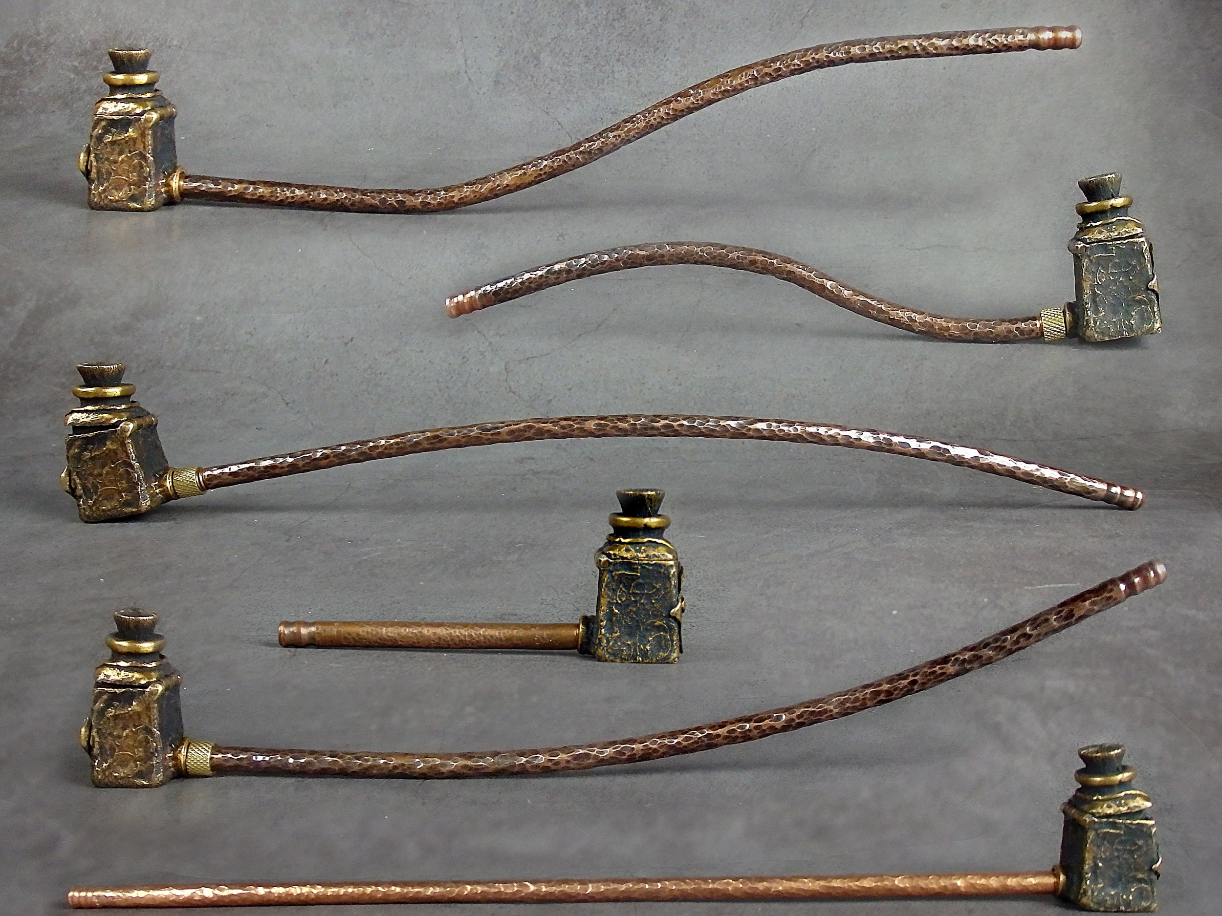 The mouthpiece is made of copper, it is screwed on, can have a length (from 3 to 30 cm) and a shape at the request of the buyer. The pipe is working, not decorative, the model is tested by the master.
