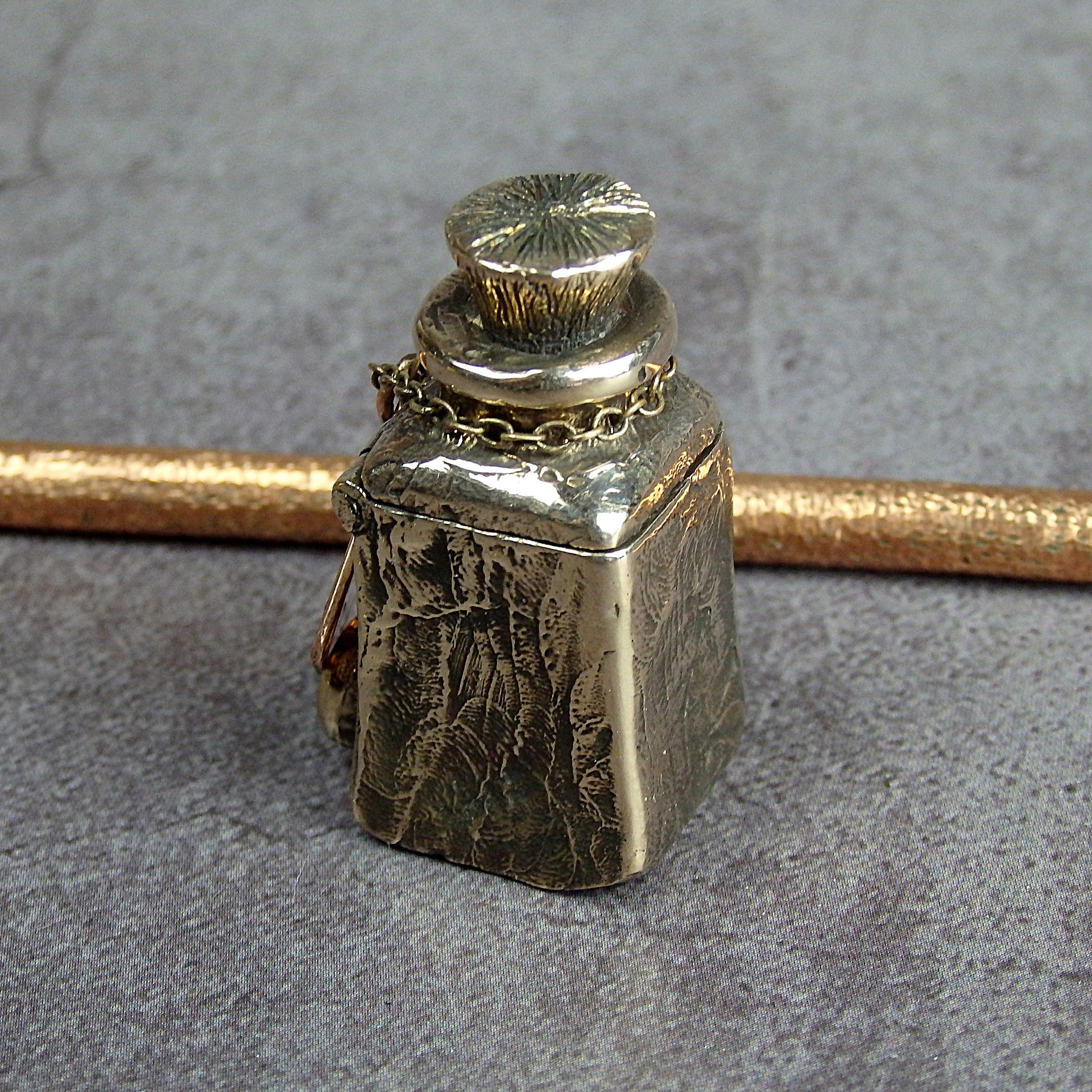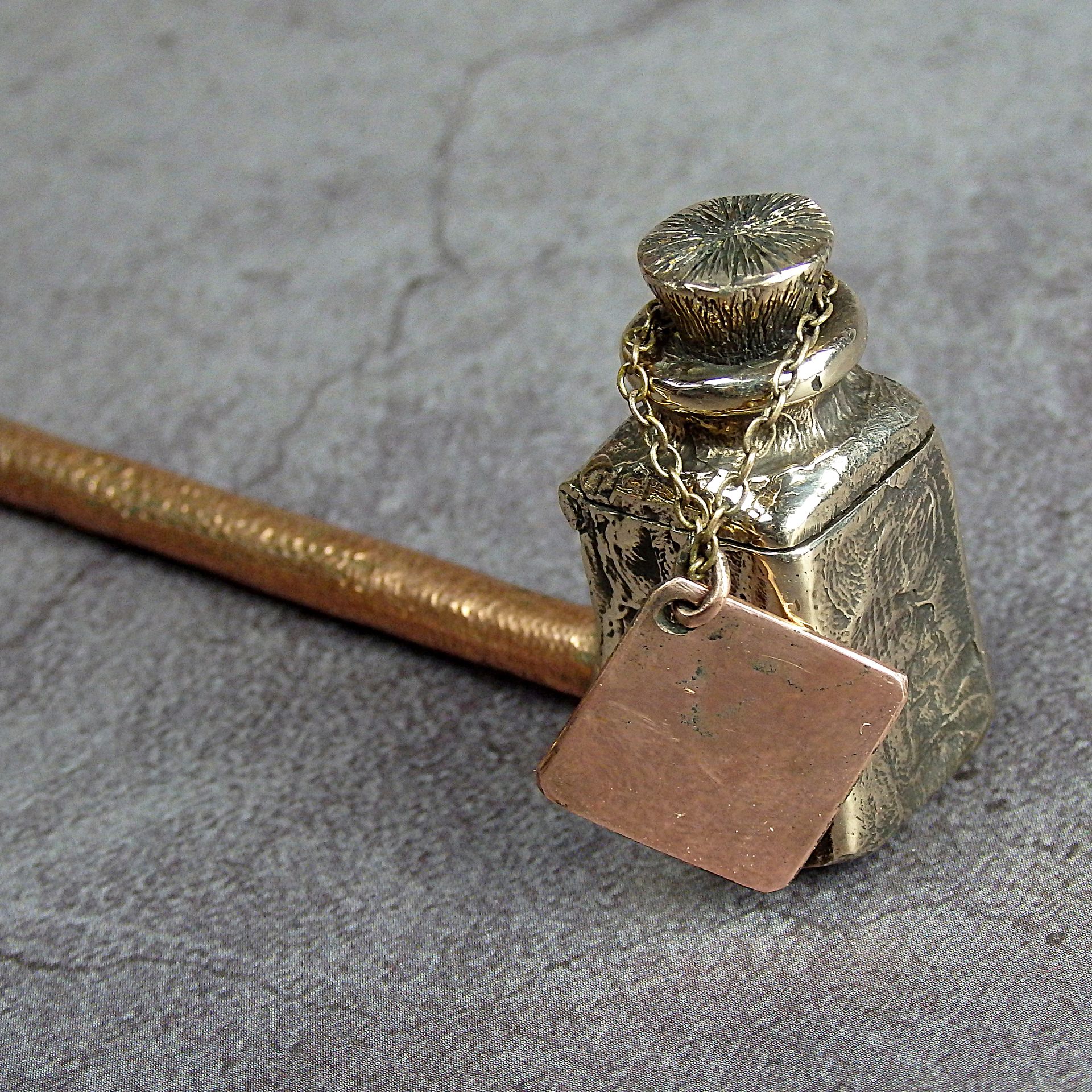 To make this item, a wax model was cut out by hand. Then, using the lost wax method, bronze parts were cast.