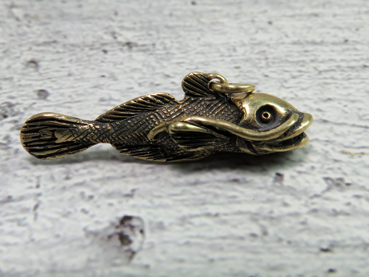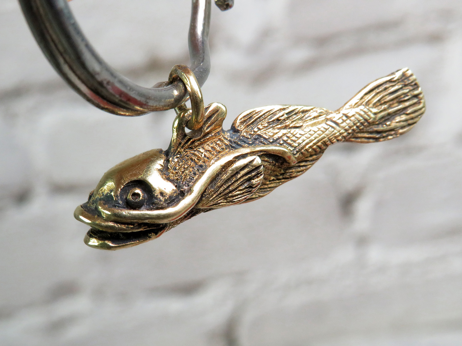 This bronze catfish can be used as a key chain, charm or pendant - for a chain, bracelet, keys or luggage. It will be an excellent symbolic token of attention, as well as suitable as a small gift for aquarists and lovers of fishing.