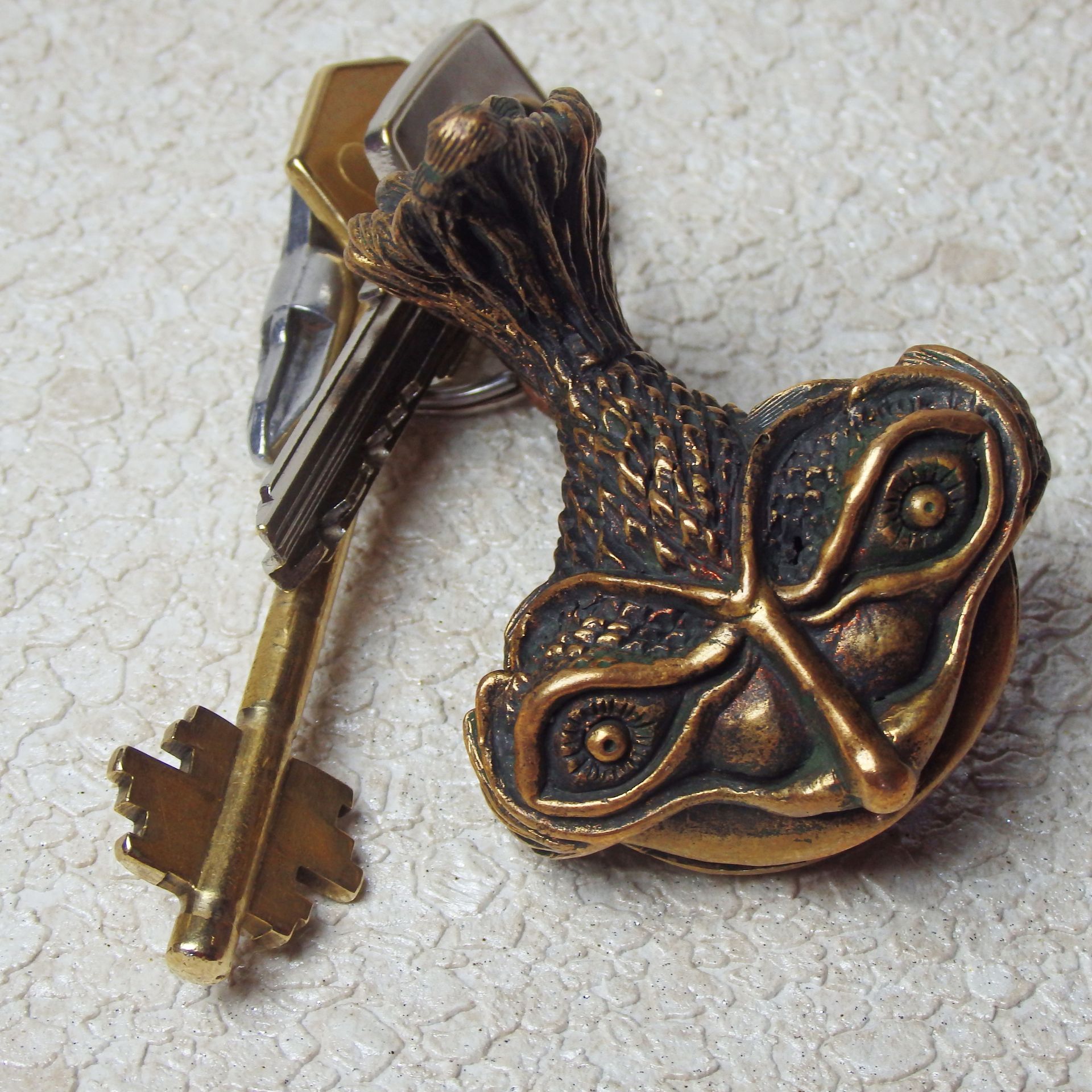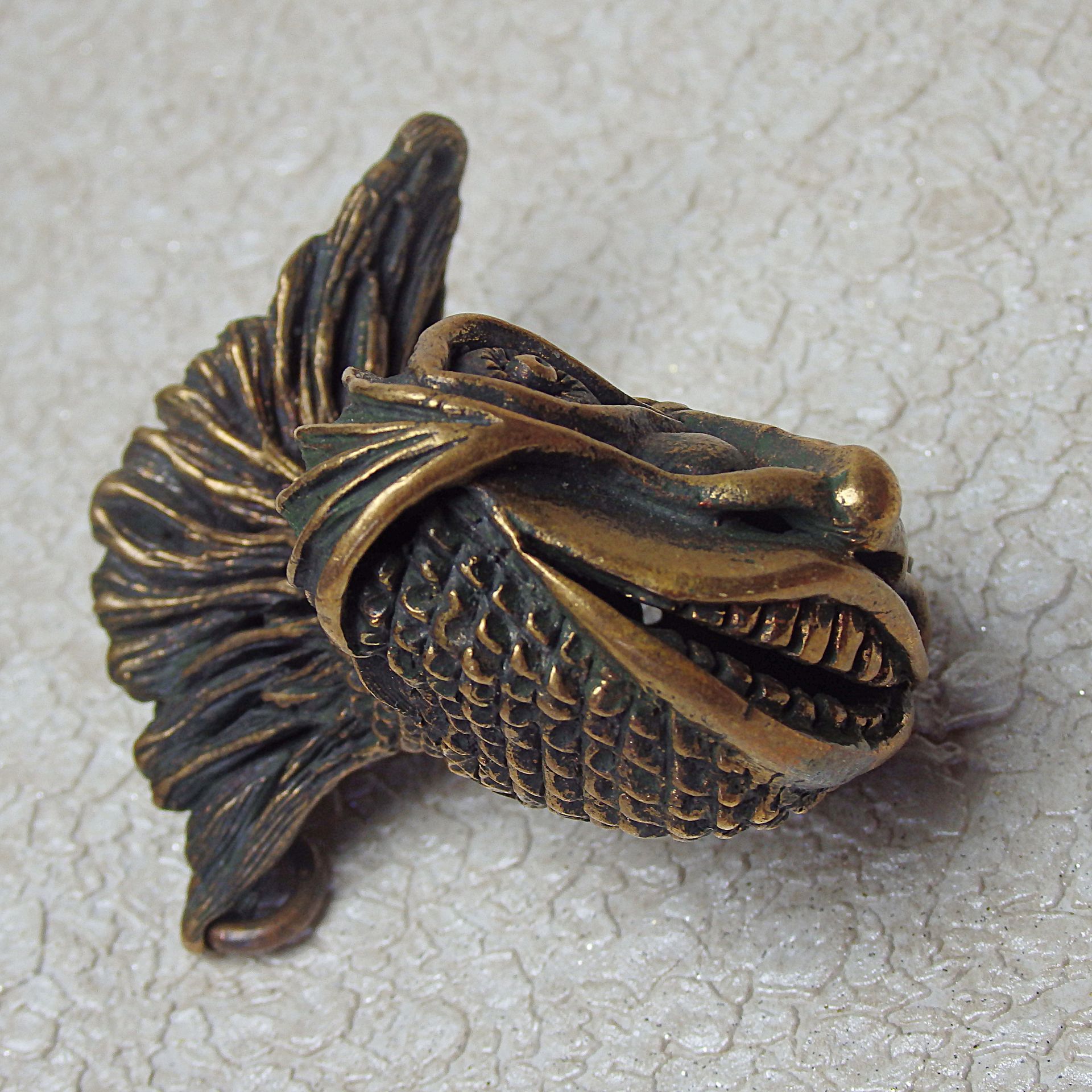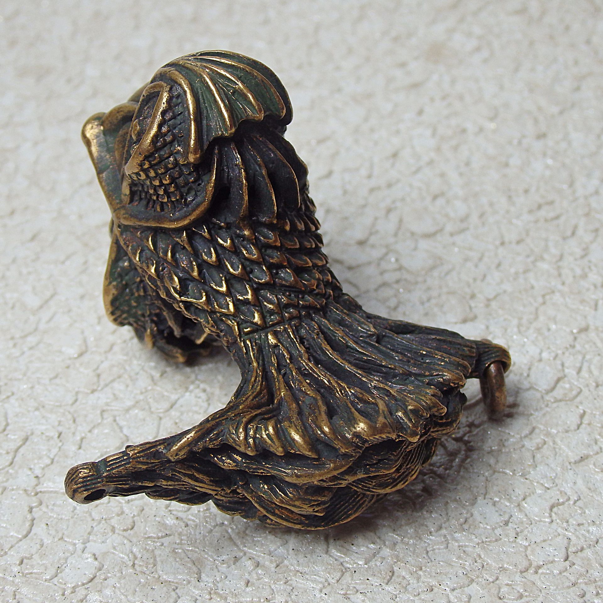 Bronze surreal fish, souvenir acting in self-defense. It can be used as a keychain or attached with a cord to a belt or wrist.