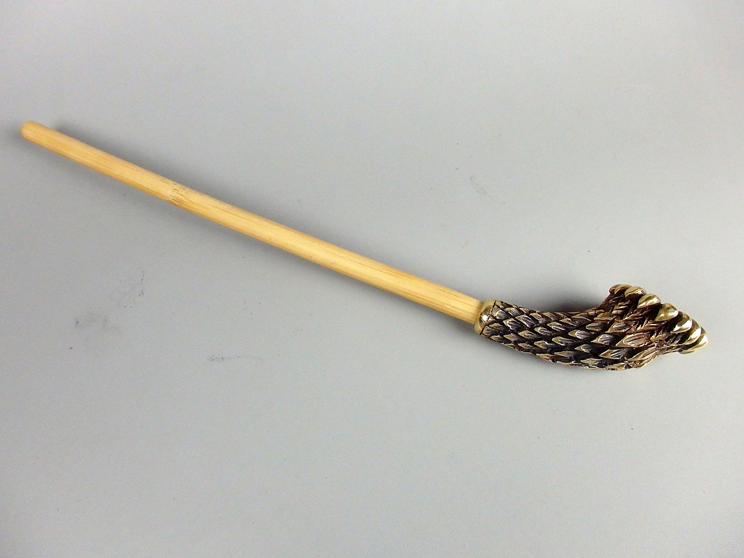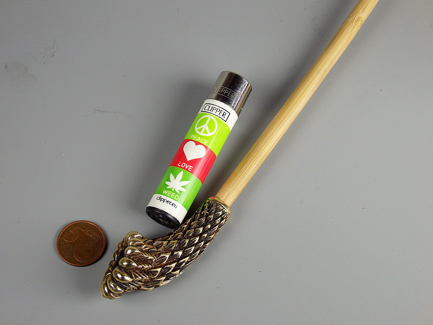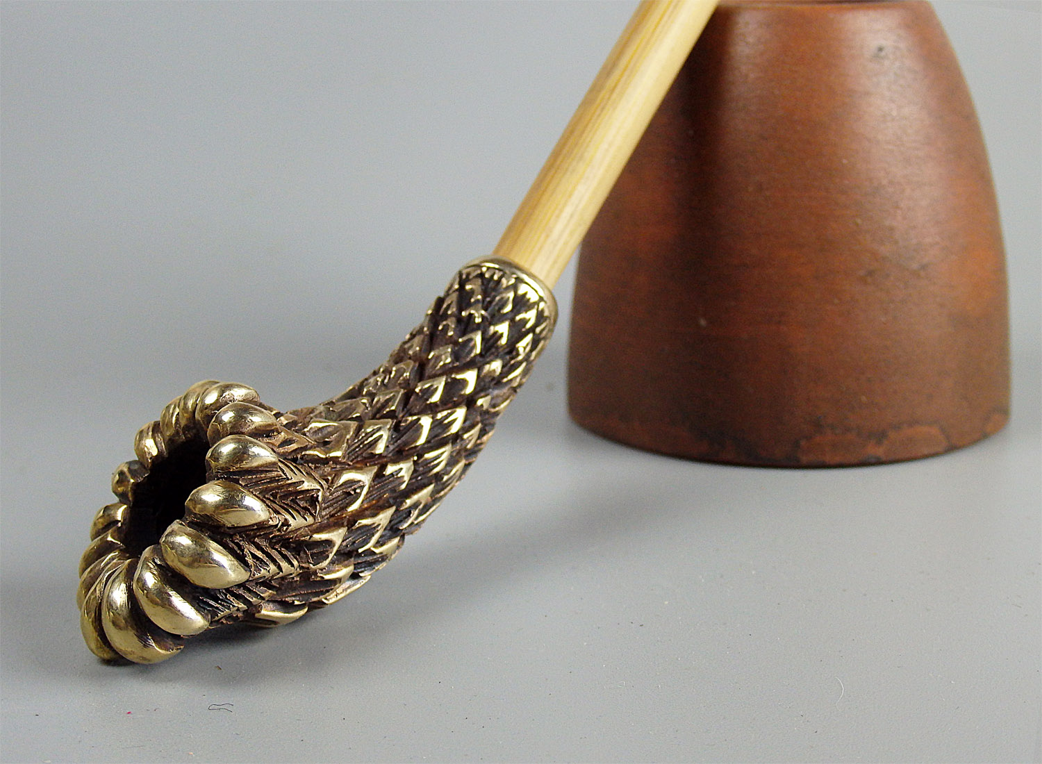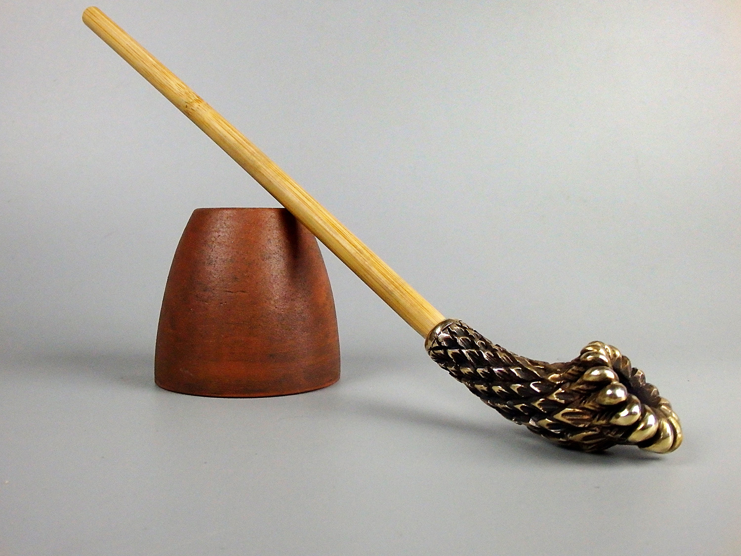 Unique bronze pipe with removable bamboo stick mouthpiece. The pipe is working, not decorative, the model is tested by the master. Made in a single copy. The set includes a pipe assembly, 4 spare mouthpieces, a nylon cleaning brush, a miniature spoon and a bottle for a disinfectant solution as a gift.