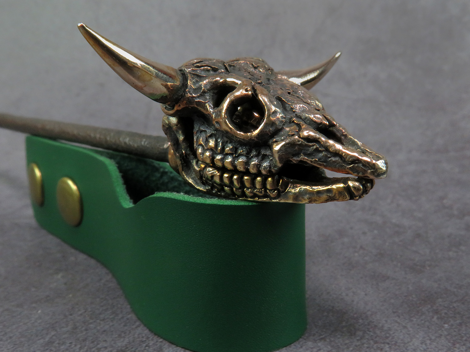 The skull is made by hand (without using computer technology) from bronze according to the author's sketch.