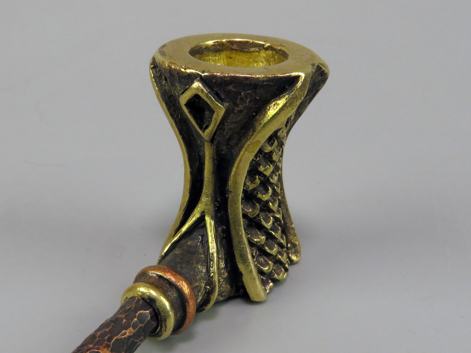 The pipe is made by hand (without using computer technology) from bronze according to the author's sketch.