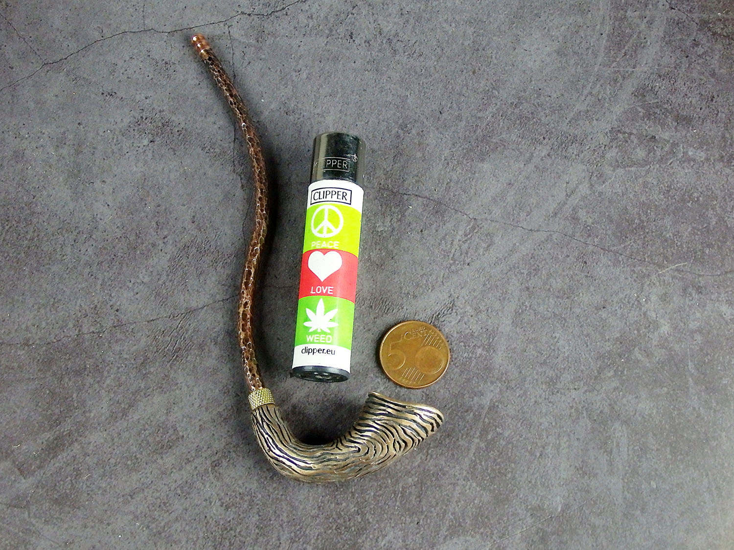 Churchwarden bronze pipe unusual curved shape. The mouthpiece is made of copper, it is screwed on, can have a length (from 5 to 30 cm) and a shape at the request of the buyer. The pipe is working, not decorative, the model is tested by the master.