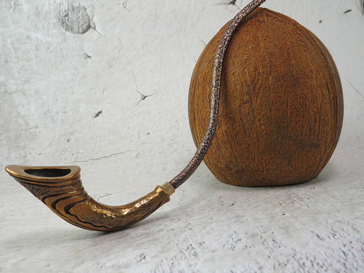 Churchwarden bronze pipe unusual curved shape. The mouthpiece is made of copper, it is screwed on, can have a length (from 5 to 30 cm) and a shape at the request of the buyer. The pipe is working, not decorative, the model is tested by the master.