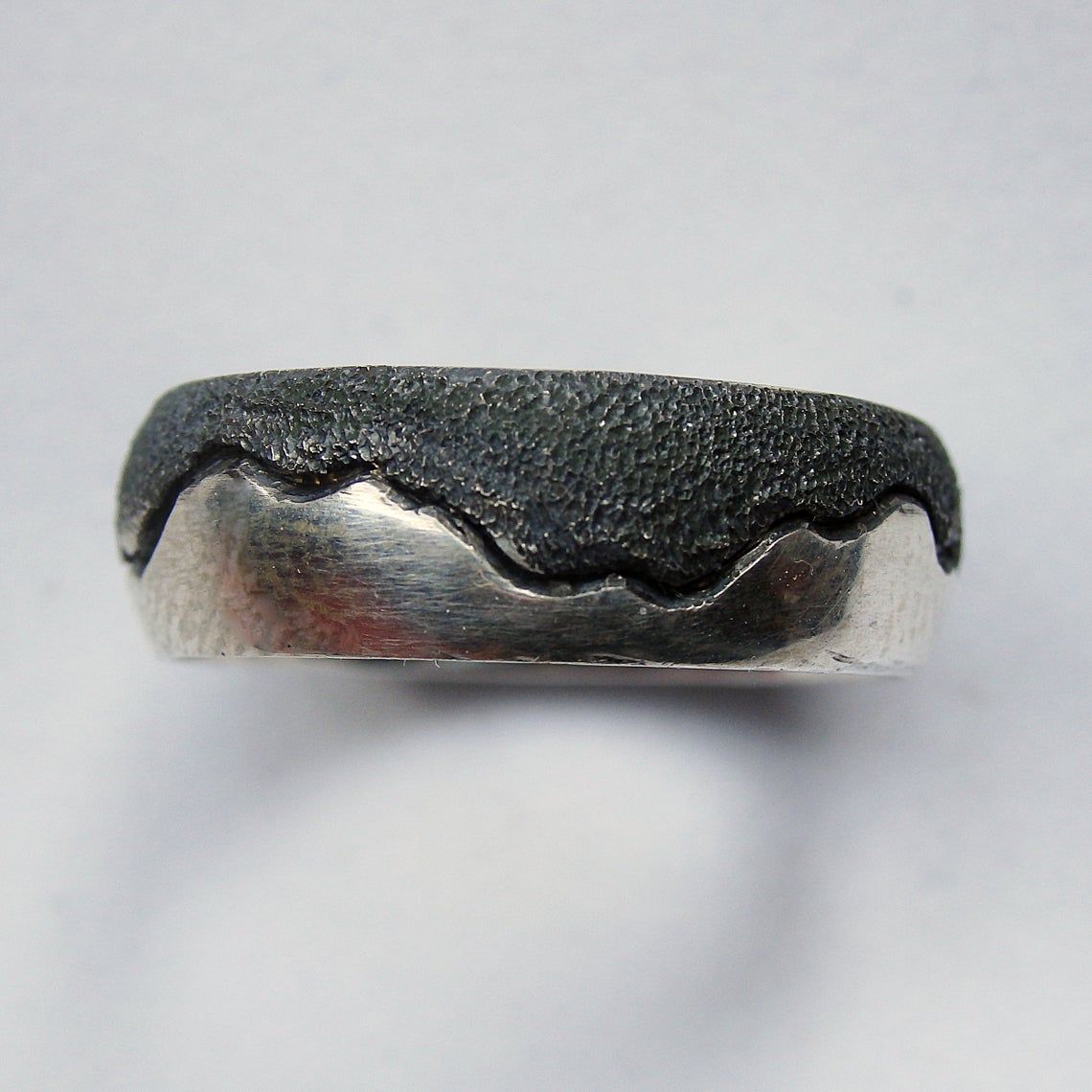 Elegant casual ring in ordinary and blackened silver. This ring will be made especially for you and manually, not replicable, so it will be unique and only for you.
