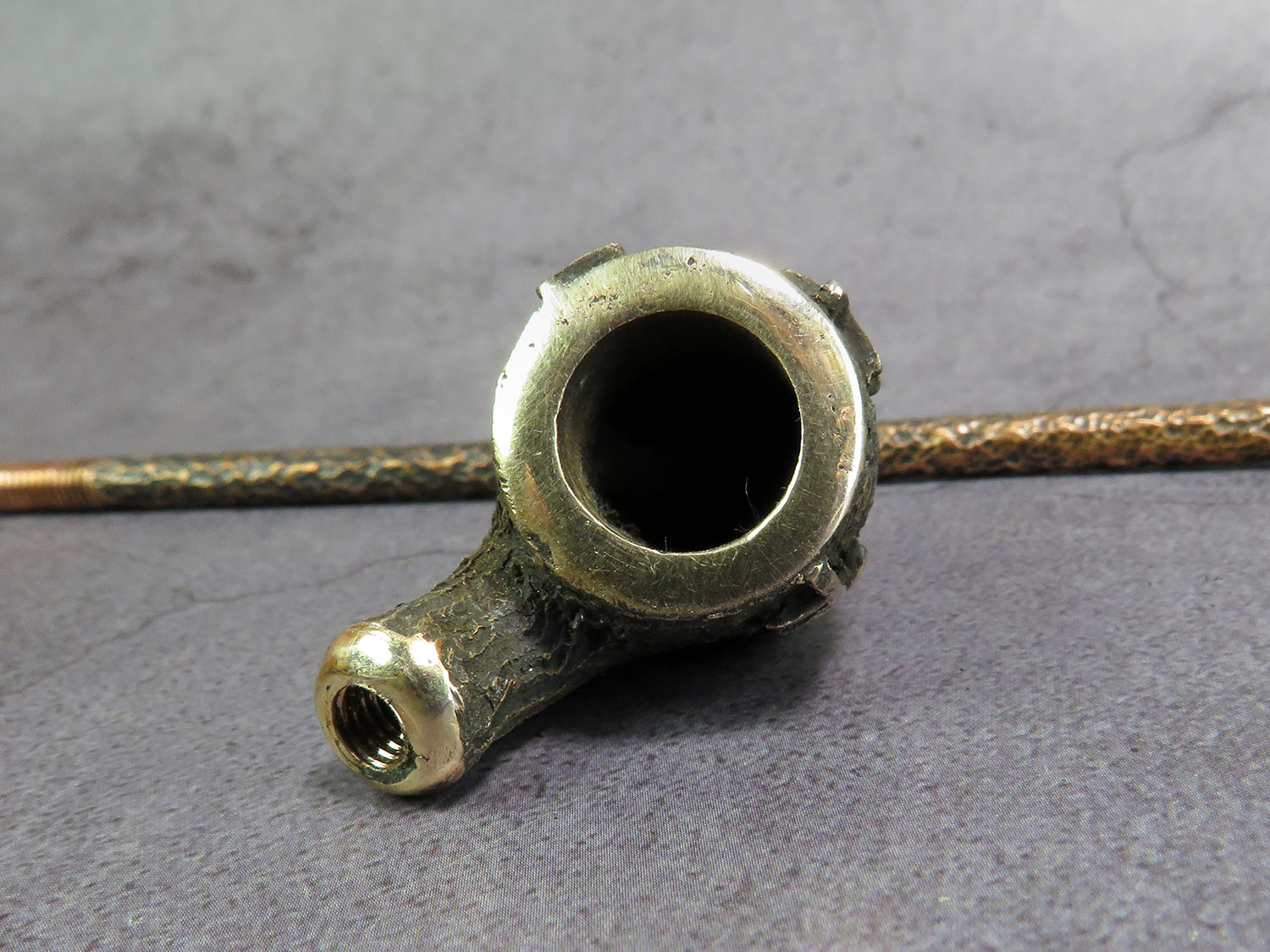 The mouthpiece is made of copper, it is screwed on, can have a length (from 5 to 30 cm) and a shape at the request of the buyer. The pipe is working, not decorative, the model is tested by the master.