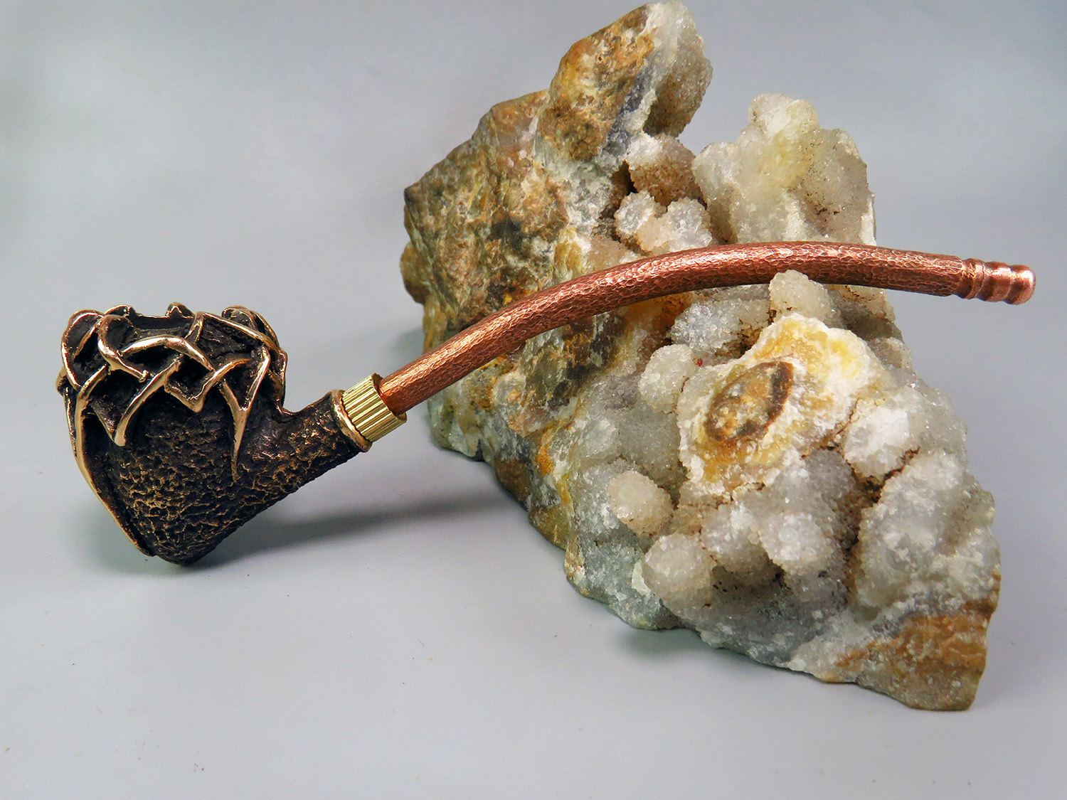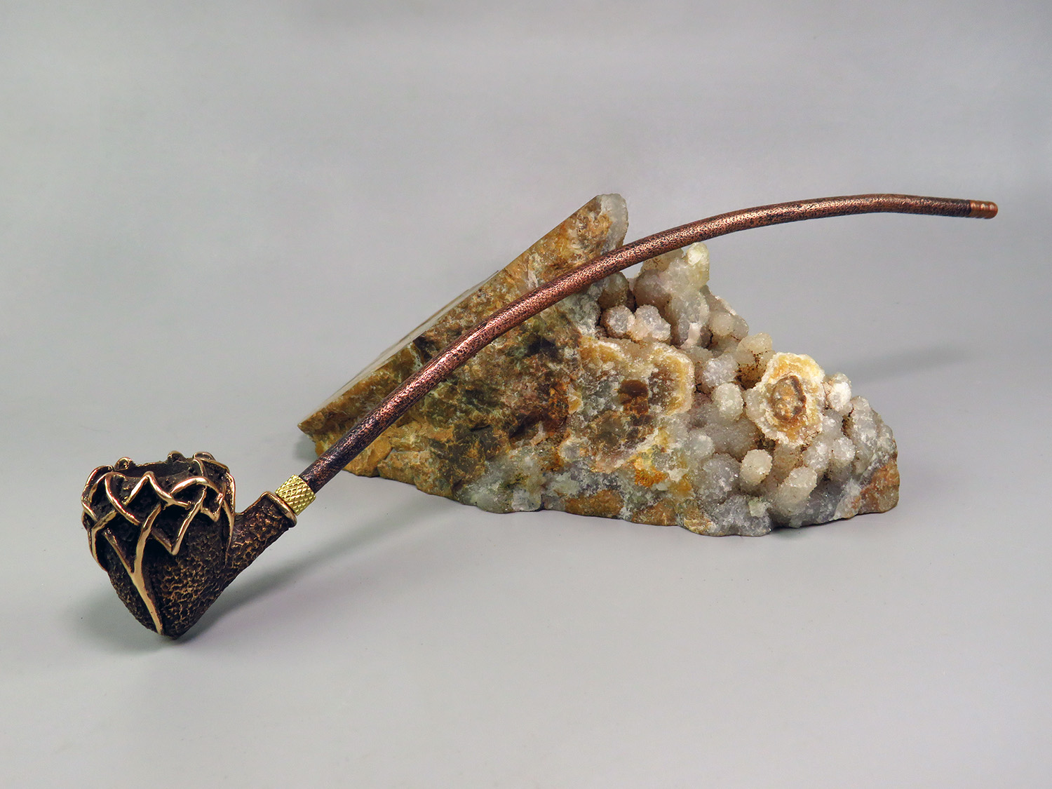 The pipe is made by hand (without using computer technology) from bronze according to the author's sketch.