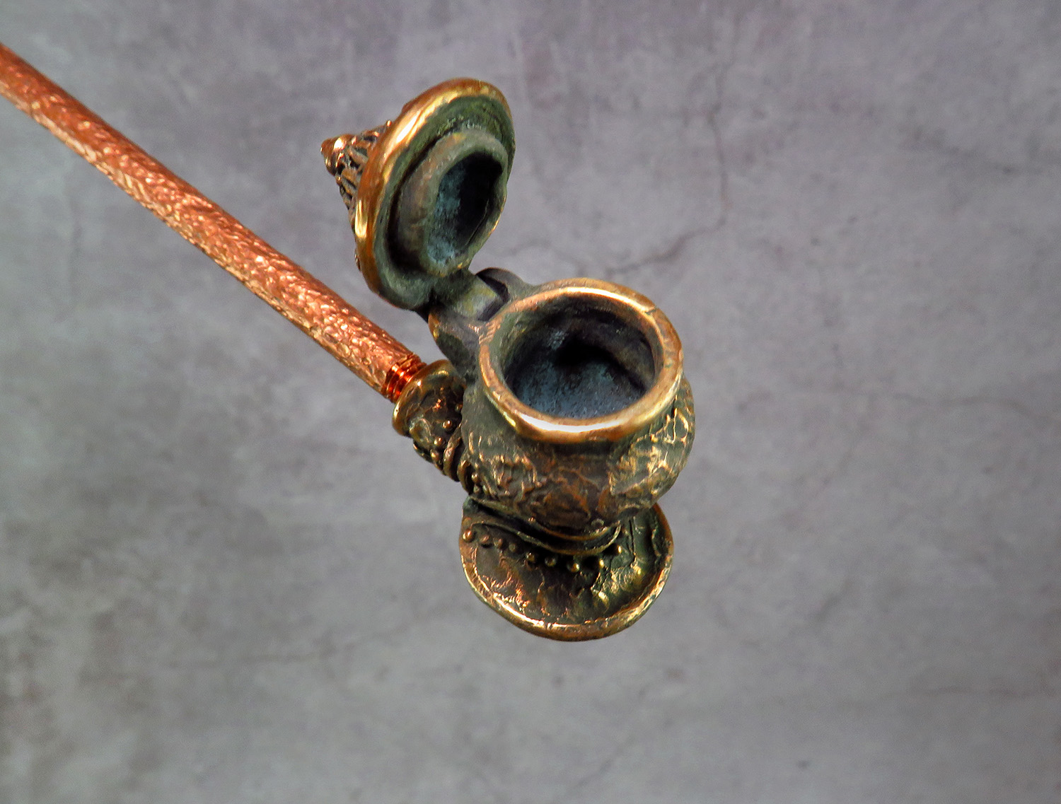The pipe is made by hand (without using computer technology) from bronze according to the author's sketch.