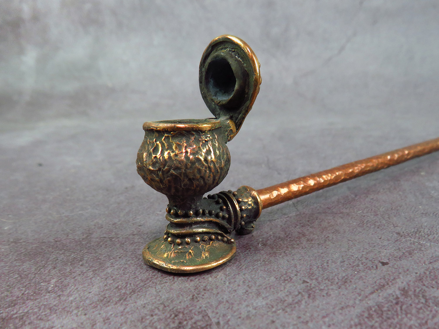 Handmade smoking pipe with lid. The mouthpiece is made of copper, it is screwed on, can have a length (from 3 to 30 cm) and a shape at the request of the buyer. The pipe is working, not decorative, the model is tested by the master.