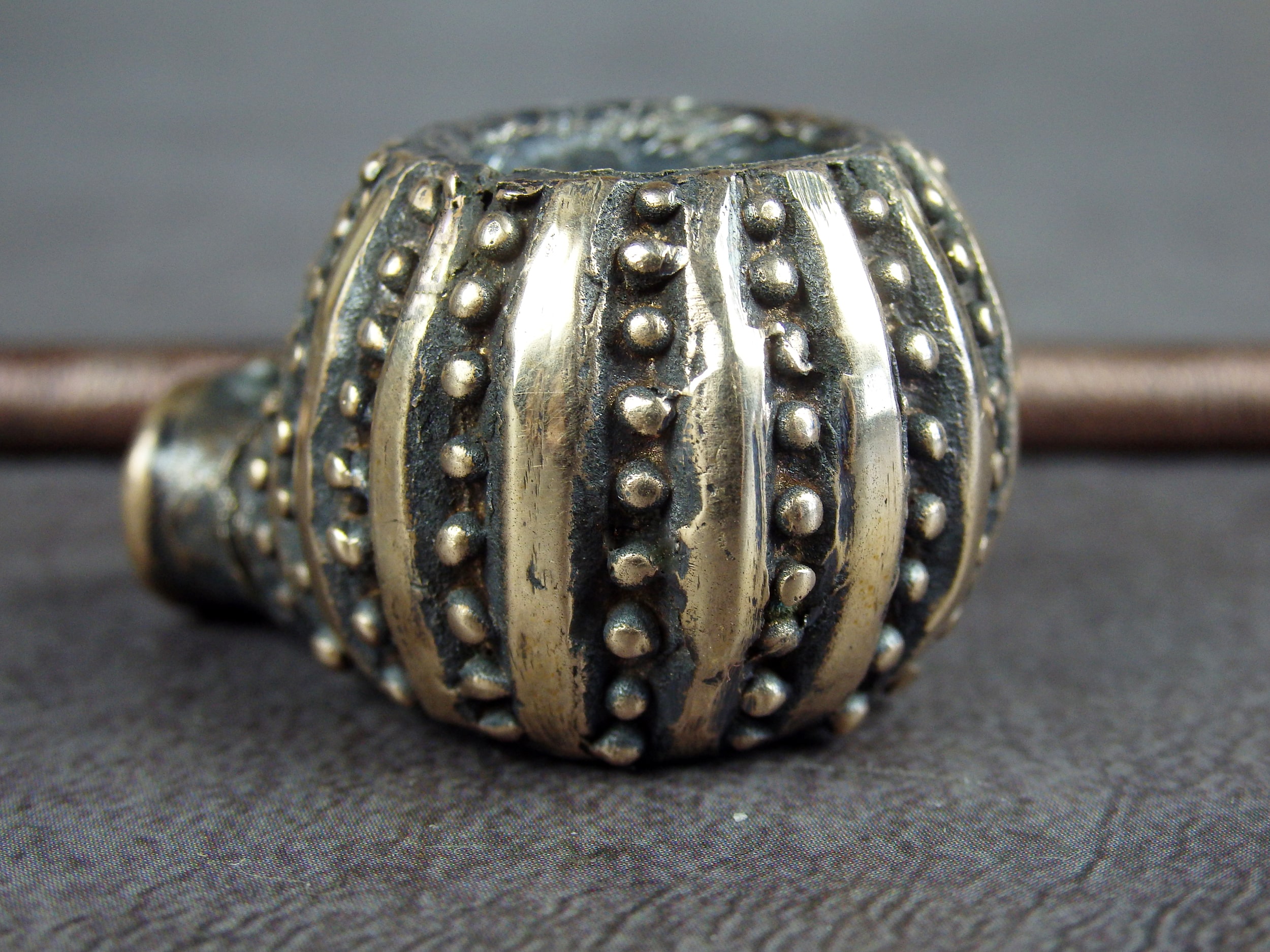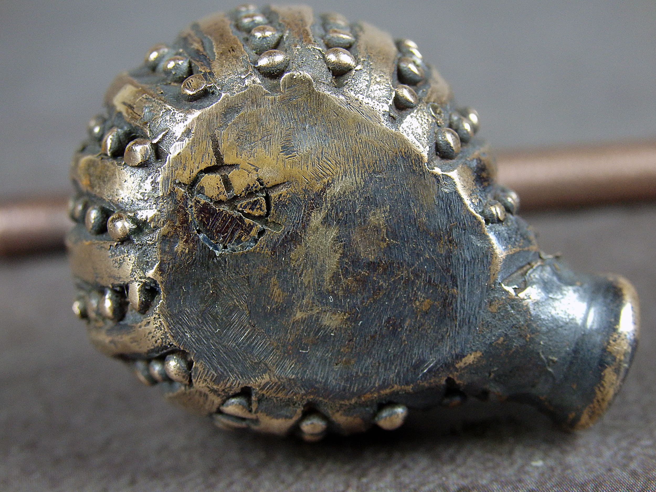 To make this item, a wax model was cut out by hand. Then, using the lost wax method, bronze parts were cast.