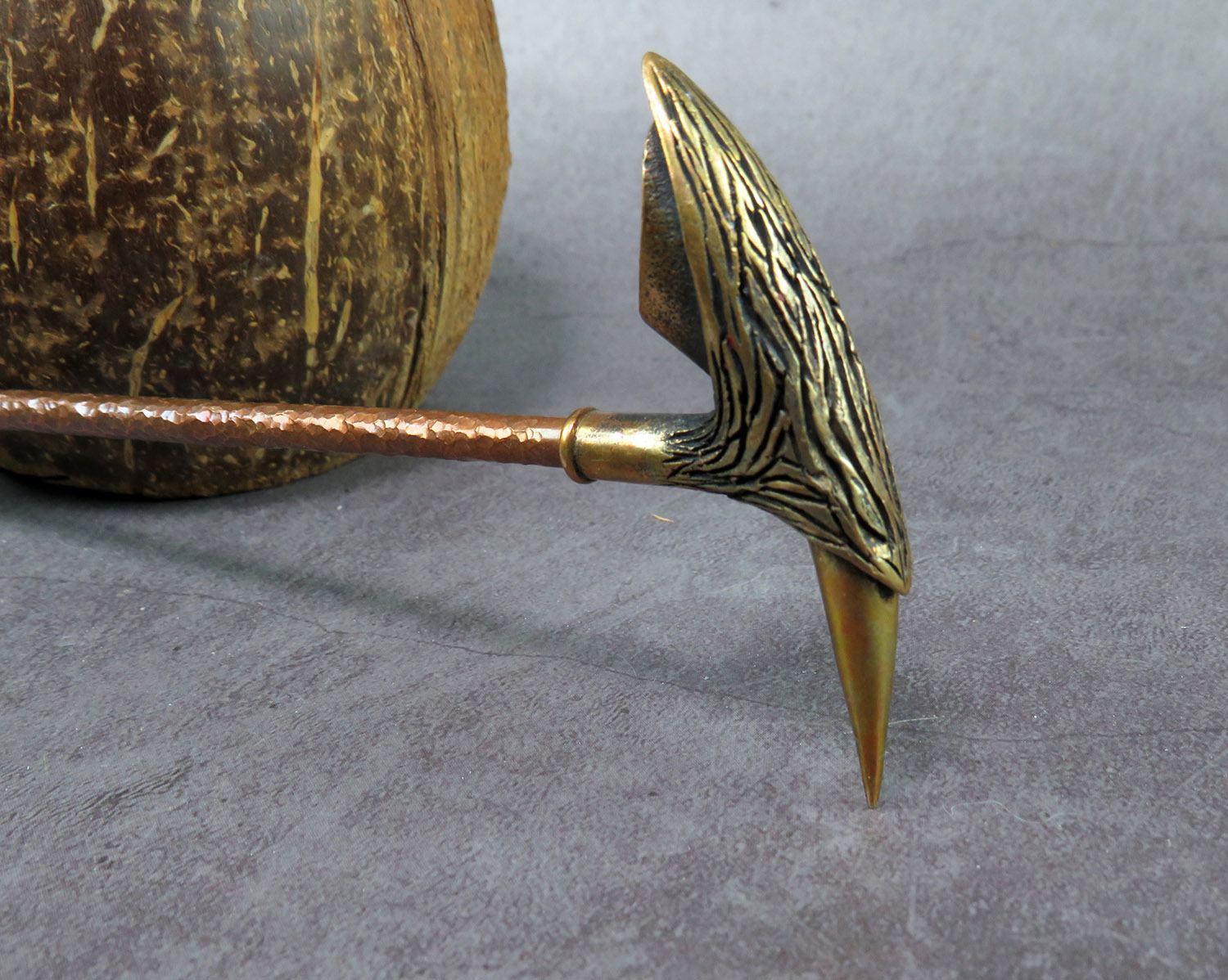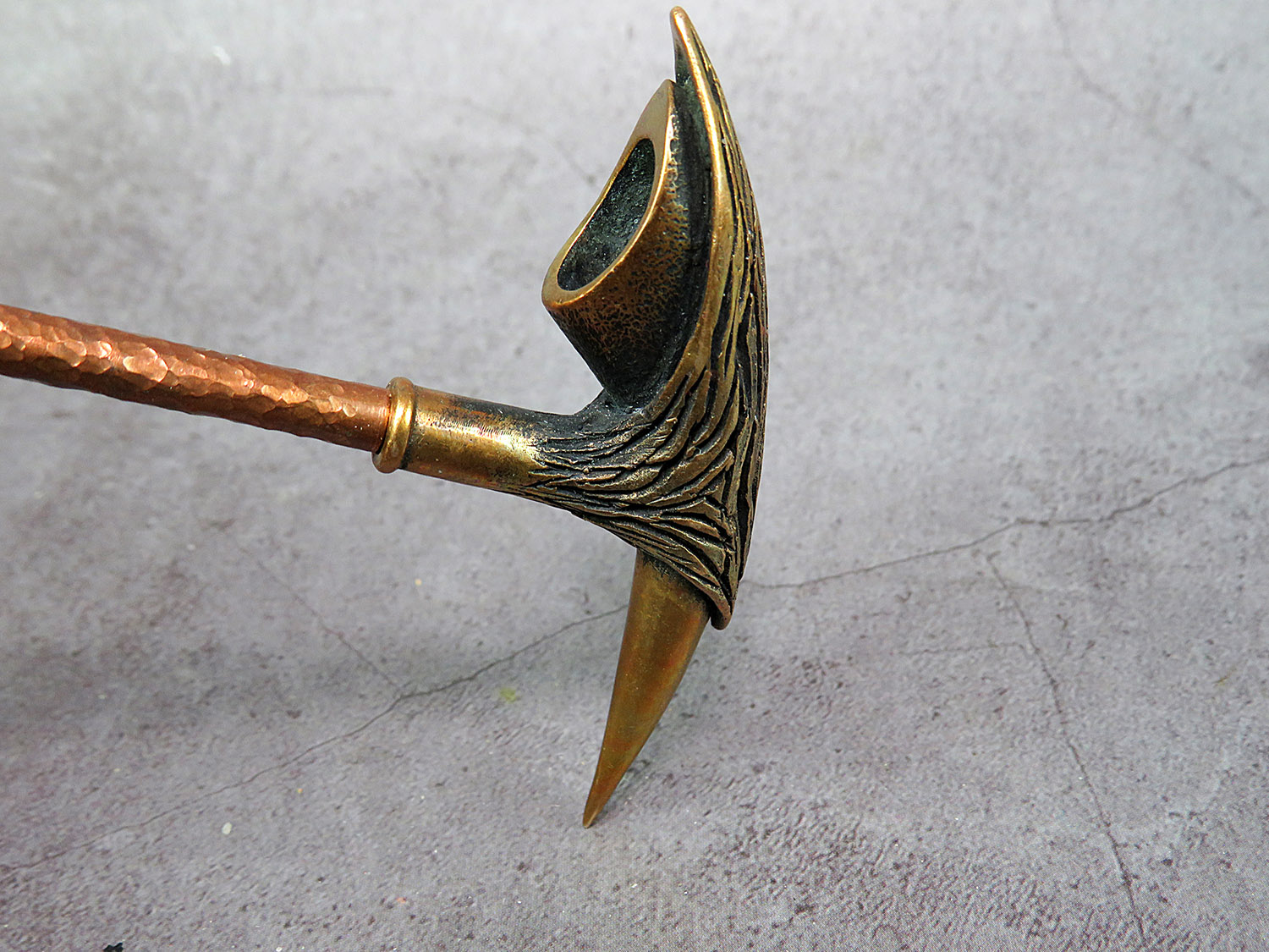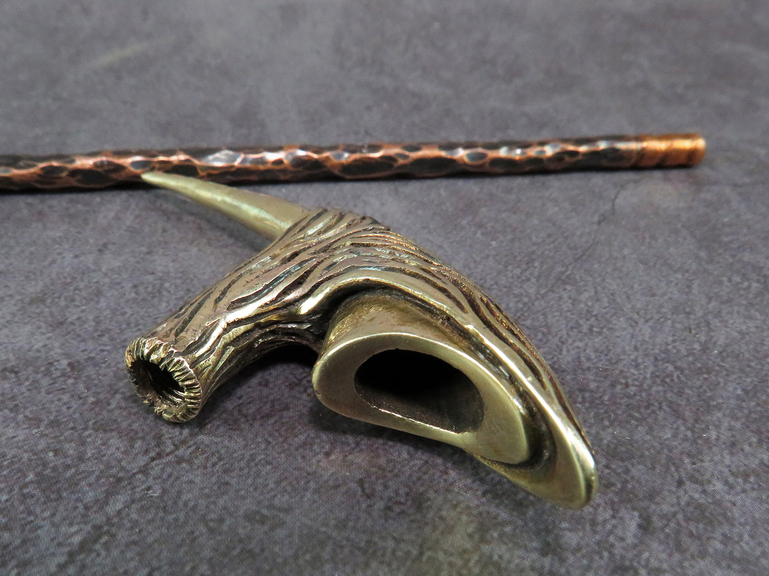 Unusual churchwarden bronze pipe in archaic style. The mouthpiece is made of copper, it is screwed on, can have a length (from 5 to 30 cm) and a shape at the request of the buyer. The pipe is working, not decorative, the model is tested by the master.