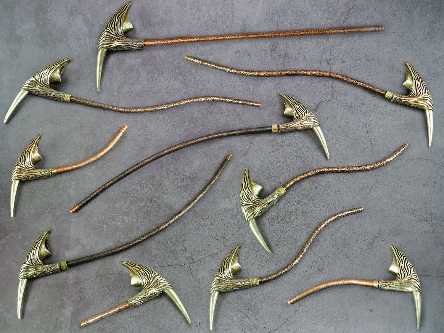 To make this item, a wax model was cut out by hand. Then, using the lost wax method, bronze parts were cast.