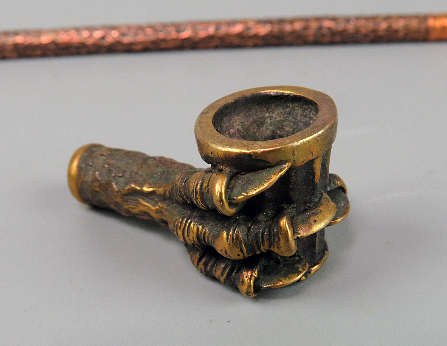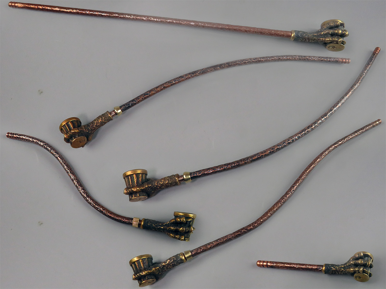 The mouthpiece is made of copper, it is screwed on, can have a length (from 3 to 30 cm) and a shape at the request of the buyer. Note! When choosing a mouthpiece, keep in mind that this pipe can stand on a plane only with straight mouthpiece.