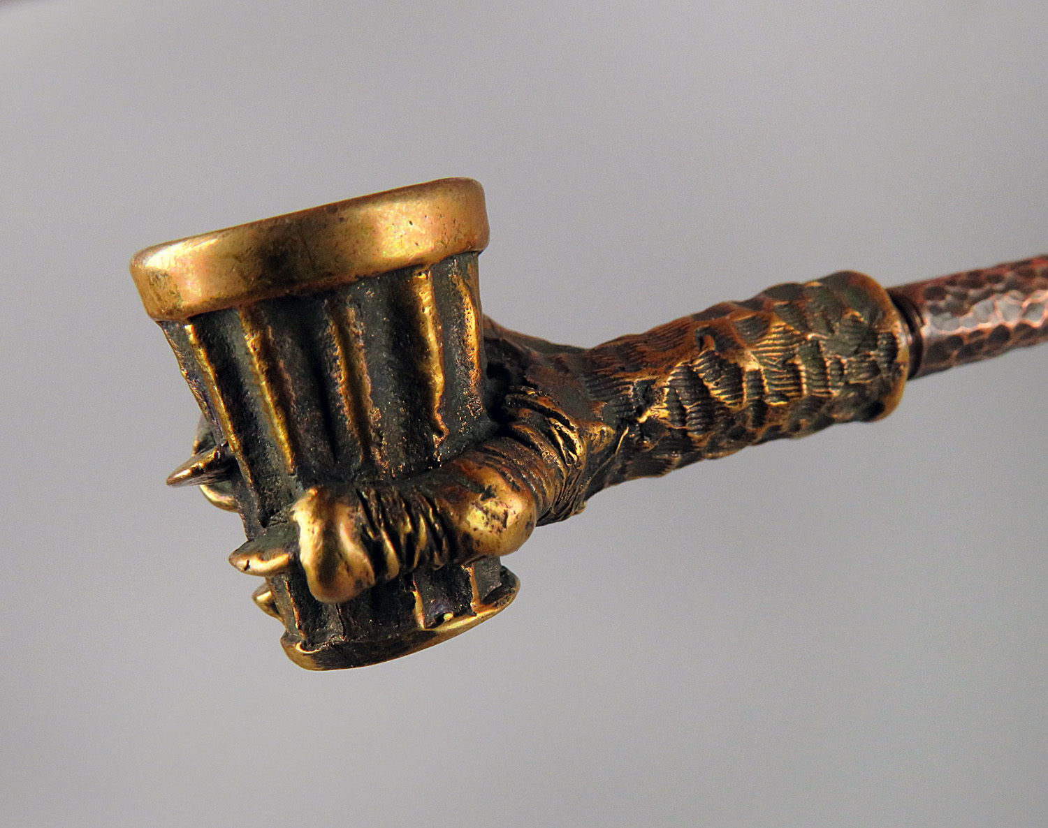 The pipe is made by hand (without using computer technology) from bronze according to the author's sketch.