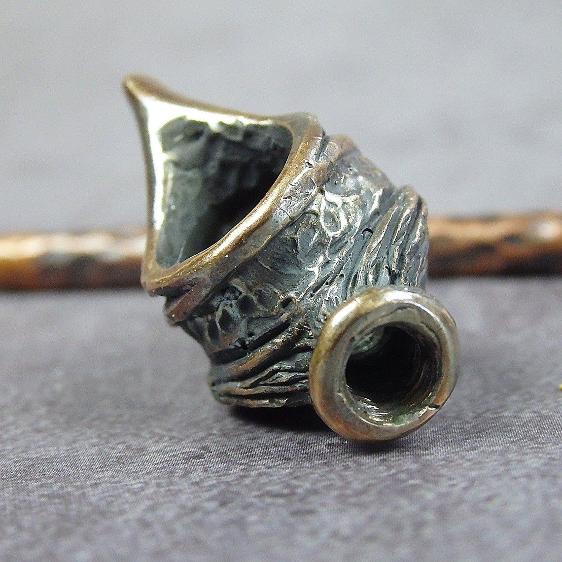The pipe is made by hand (without using computer technology) from bronze according to the author's sketch.