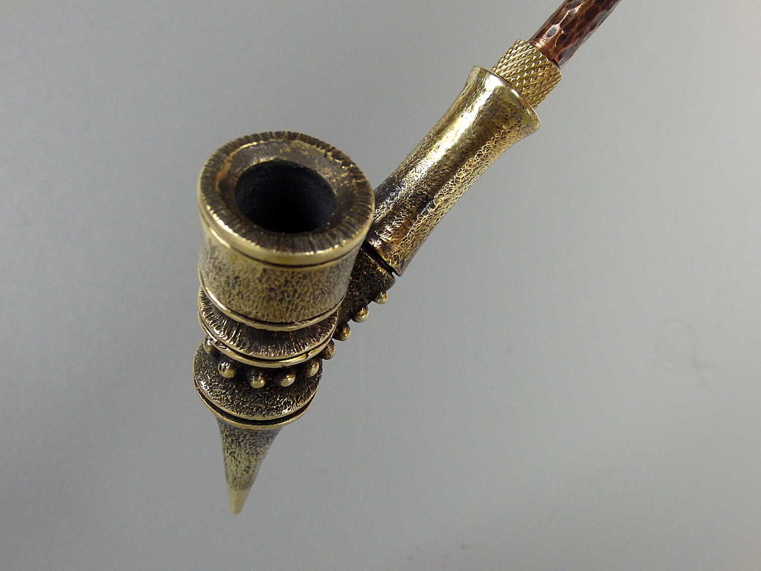 The pipe is made by hand (without using computer technology) from bronze according to the author's sketch.
