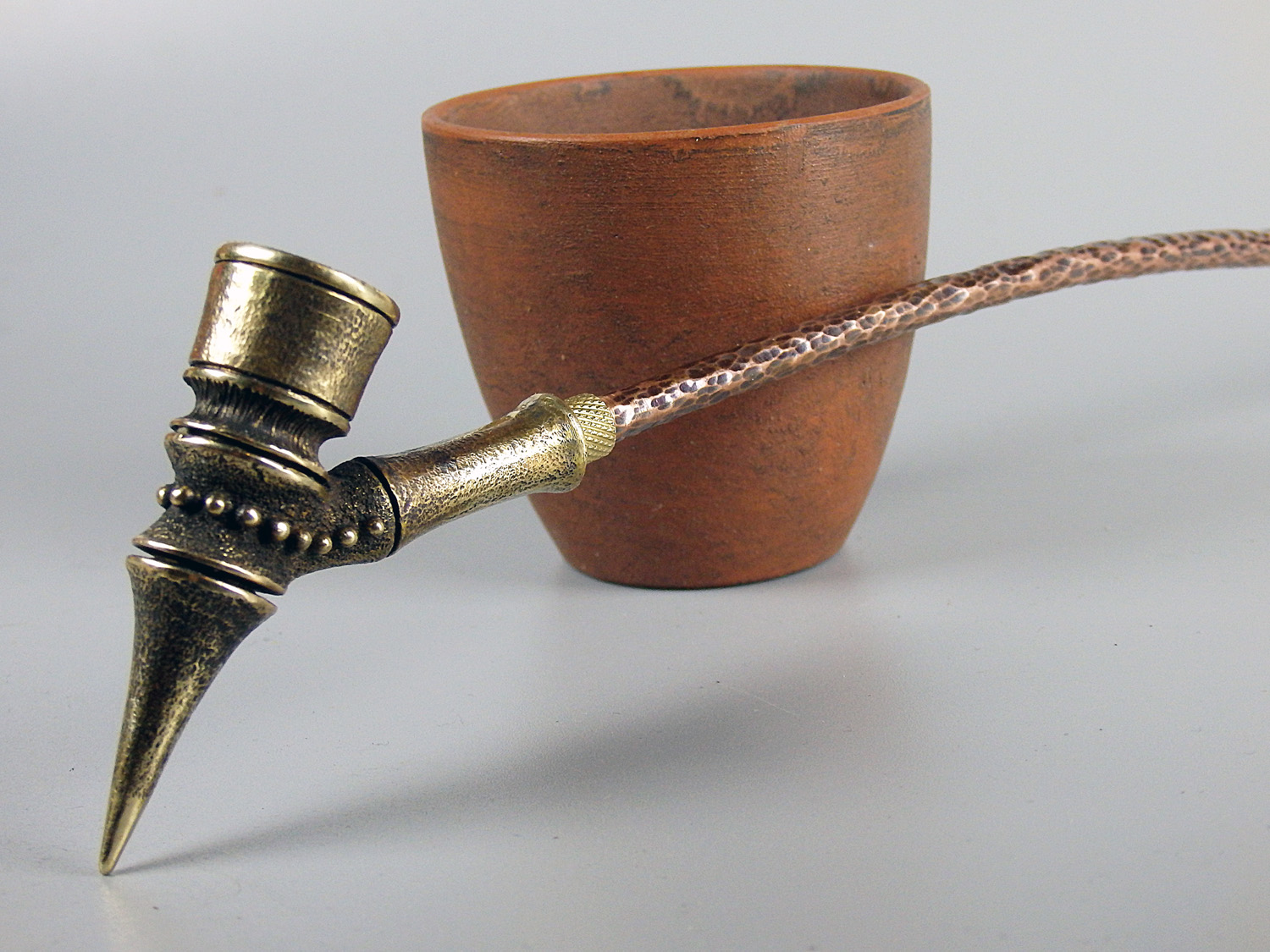 Designer bronze churchwarden pipe. The mouthpiece is made of copper, it is screwed on, can have a length (from 5 to 30 cm) and a shape at the request of the buyer. The pipe is working, not decorative, the model is tested by the master.