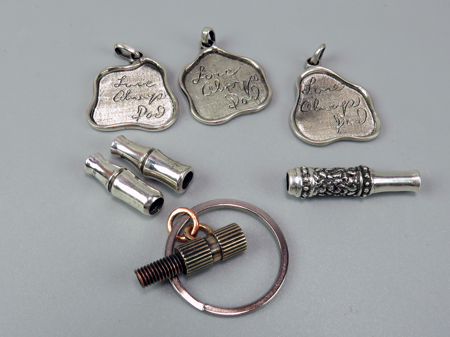 Three pendants and three mouthpieces.