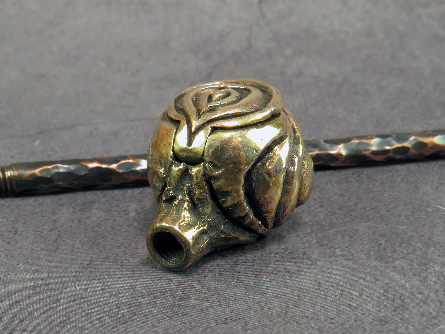 The pipe is made by hand (without using computer technology) from bronze according to the author's sketch.