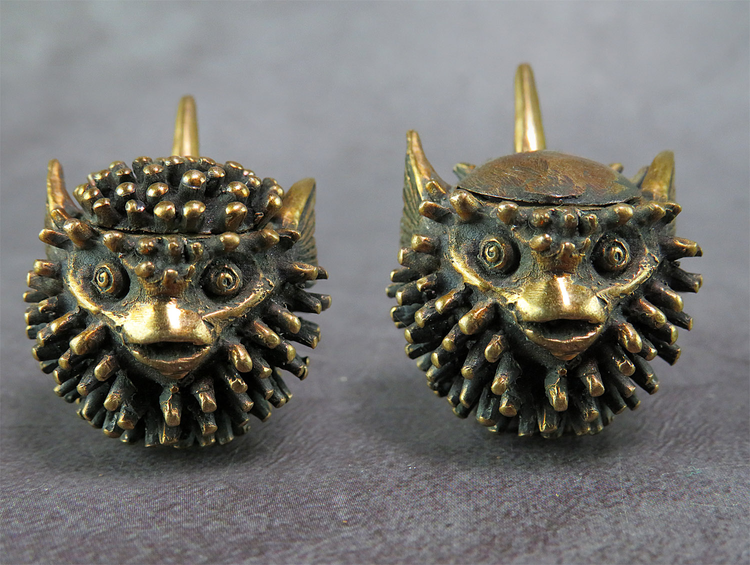 To make this item, a wax model was cut out by hand. Then, using the lost wax method, bronze parts were cast.