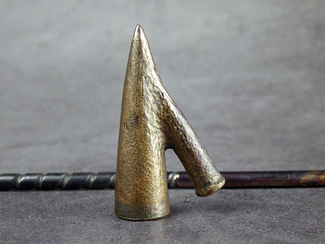 To make this item, a wax model was cut out by hand. Then, using the lost wax method, bronze parts were cast.