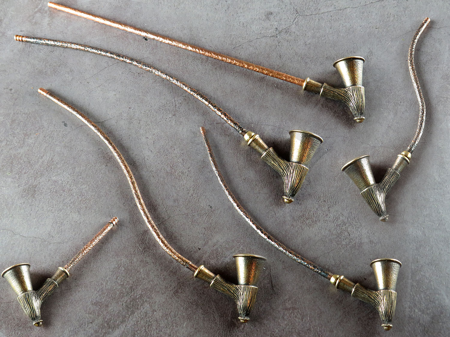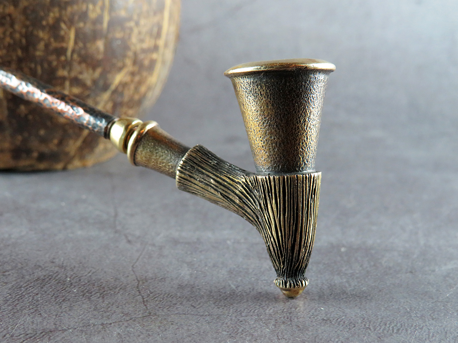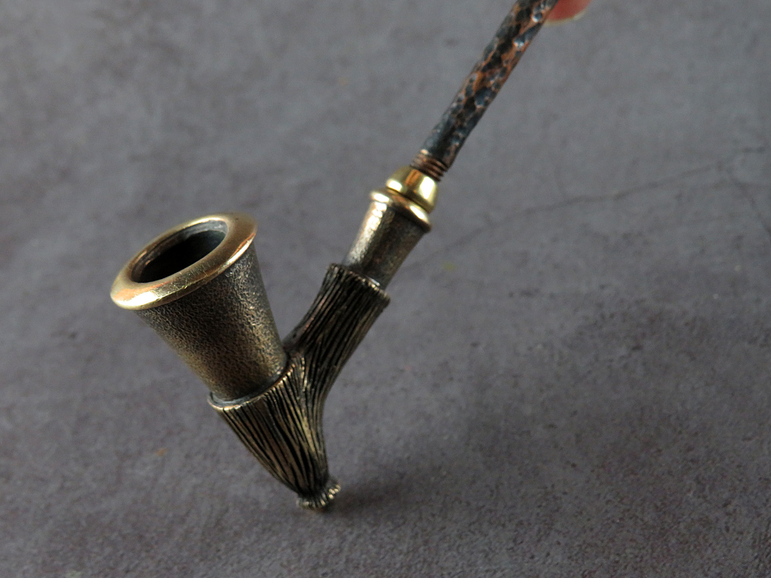 Freehand churchwarden bronze pipe. The mouthpiece is made of copper, it is screwed on, can have a length (from 5 to 30 cm) and a shape at the request of the buyer. The pipe is working, not decorative, the model is tested by the master.