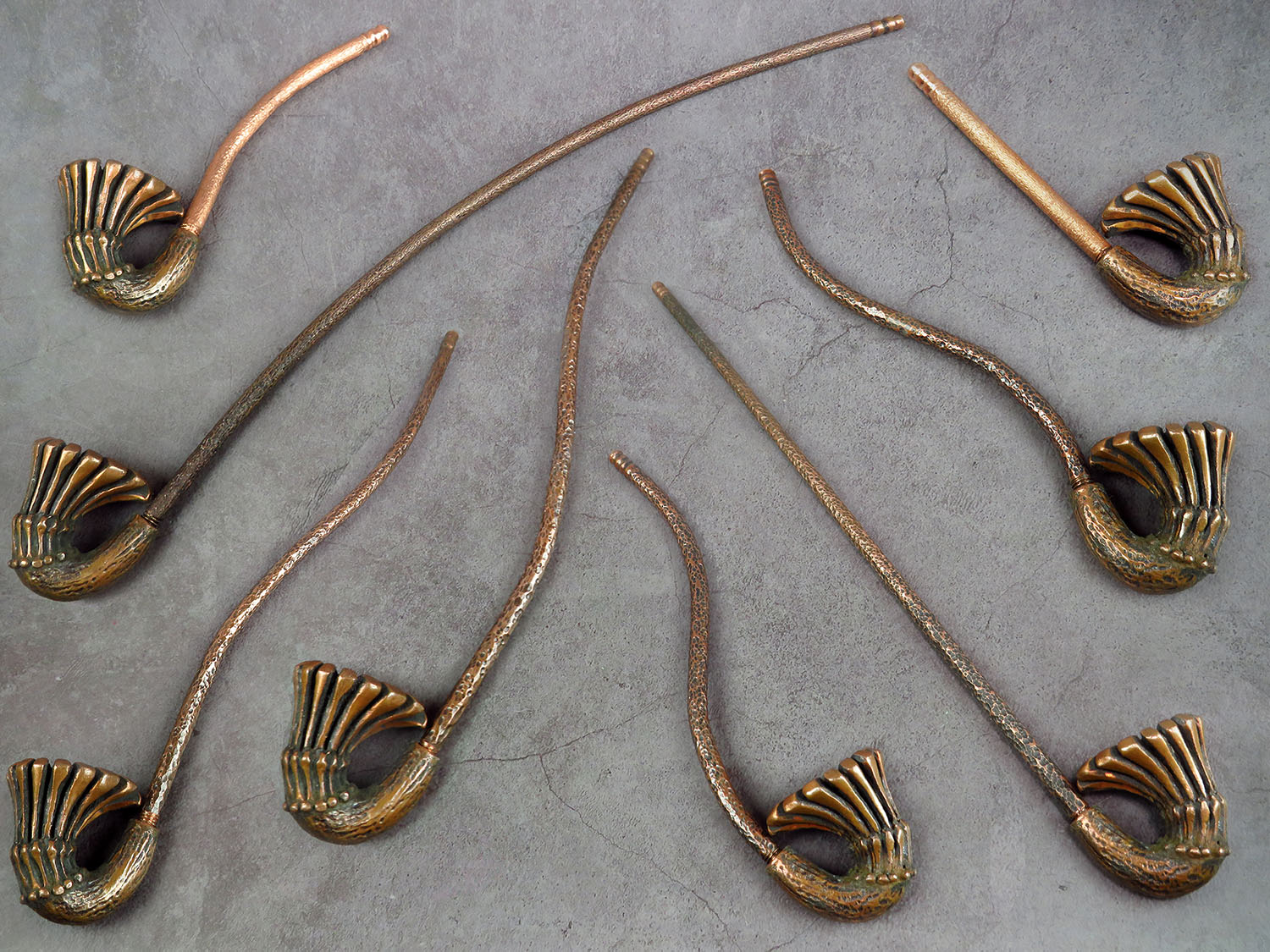 The pipe is made by hand (without using computer technology) from bronze according to the author's sketch.
