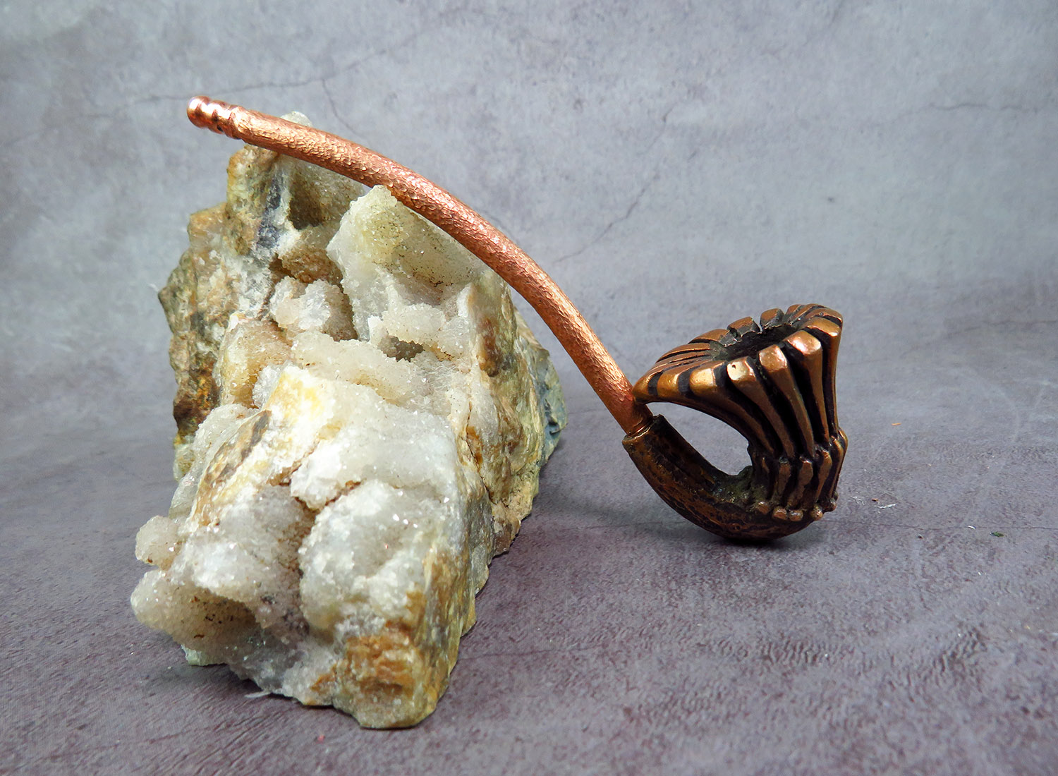 Freehand bronze pipe in the shape of a flower. The mouthpiece is made of copper, it is screwed on, can have a length (from 5 to 30 cm) and a shape at the request of the buyer. The pipe is working, not decorative, the model is tested by the master.