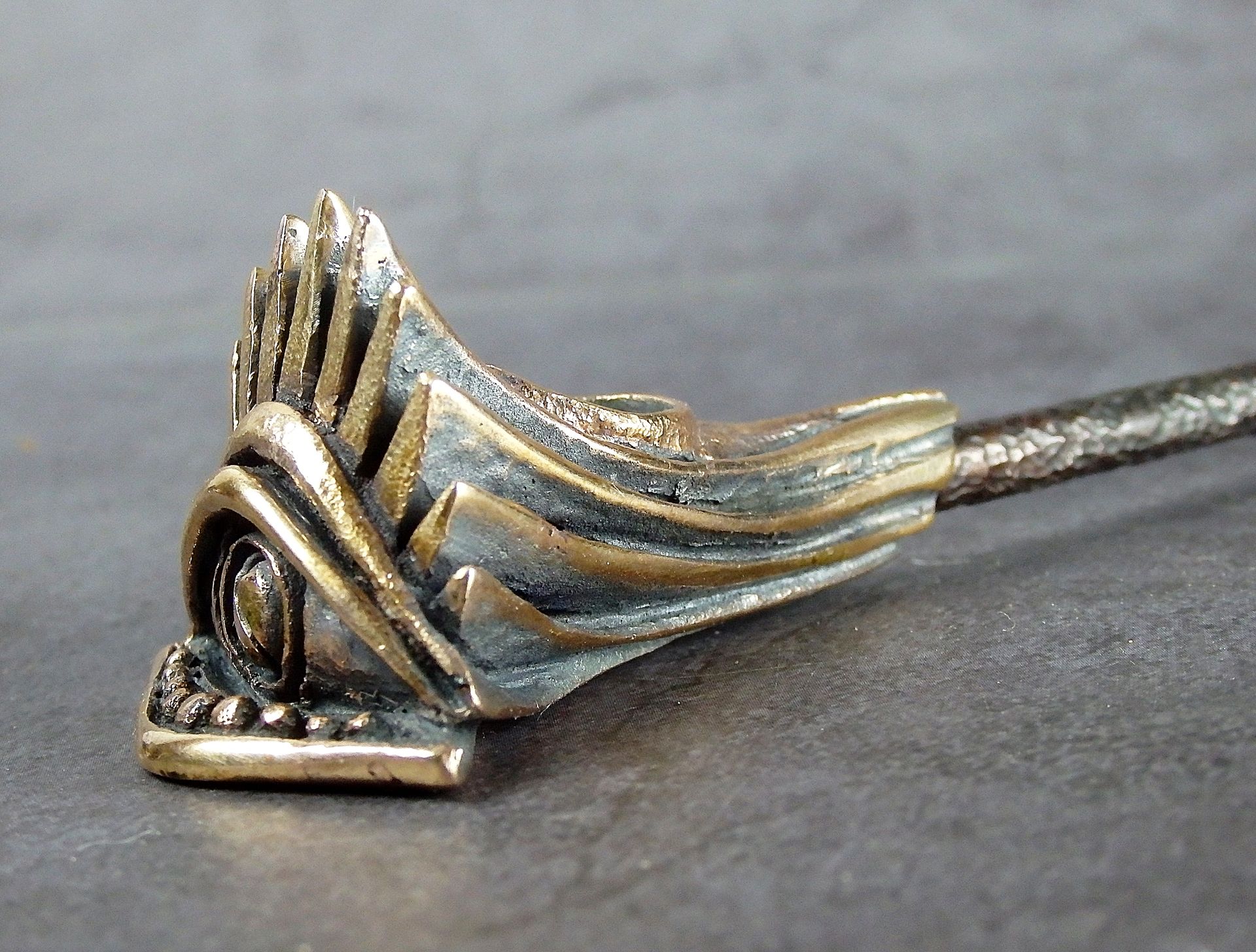 The pipe is made by hand (without using computer technology) from bronze according to the author's sketch.