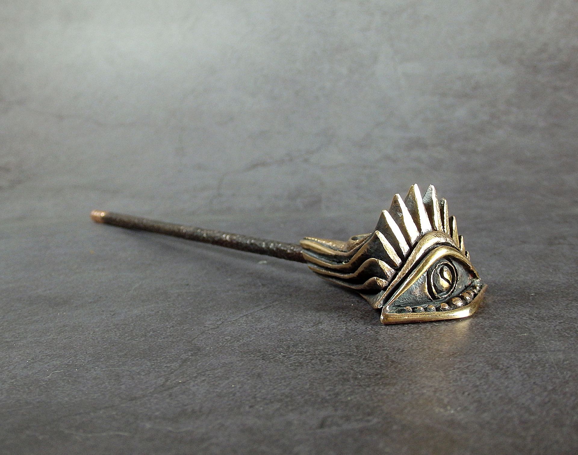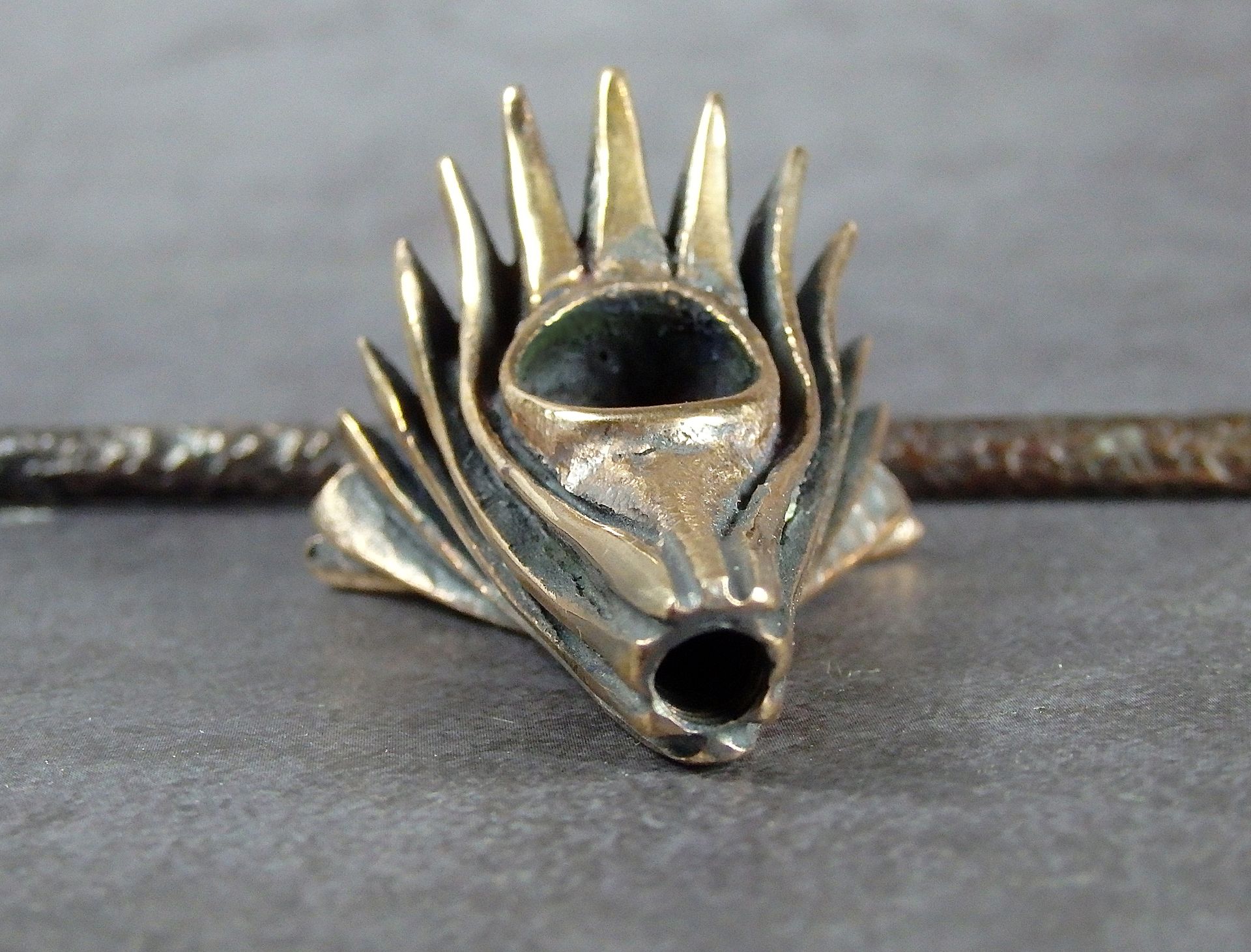 An unusual shaped bronze smoking pipe. The mouthpiece is made of copper, it is screwed on, can have a length (from 3 to 30 cm) and a shape at the request of the buyer. The pipe is working, not decorative, the model is tested by the master.