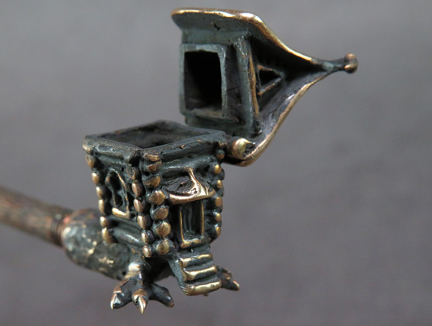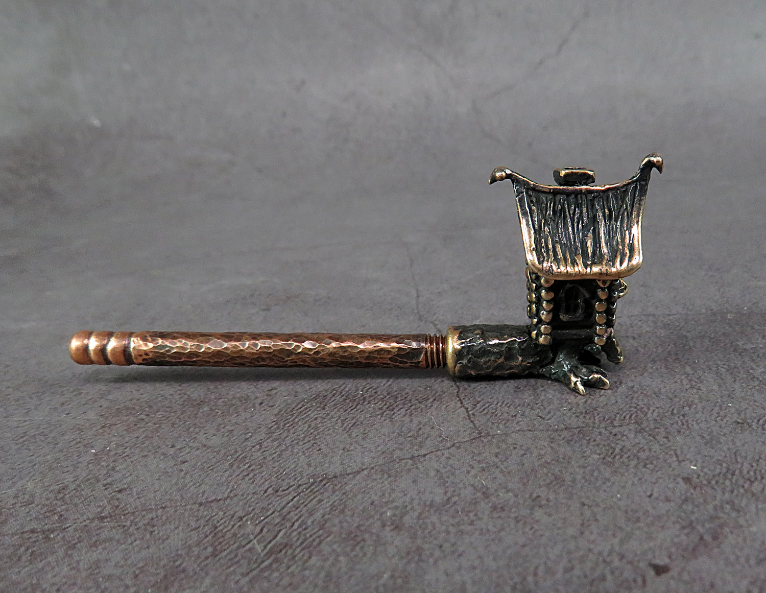 Bronze smoking pipe with a bowl in the shape of a magical hut from Slavic folk tales - Baba Yaga's house.