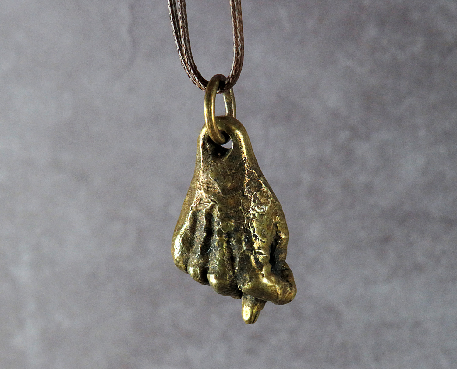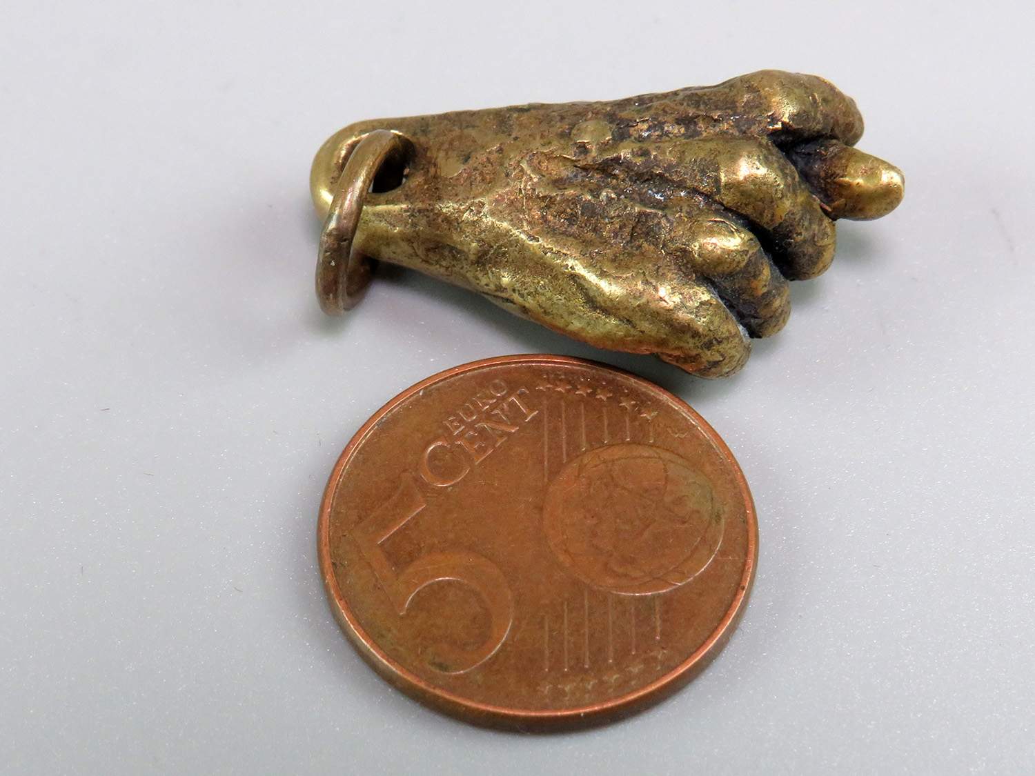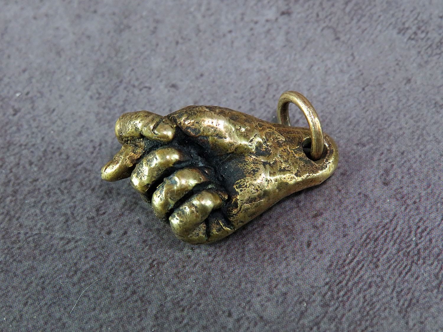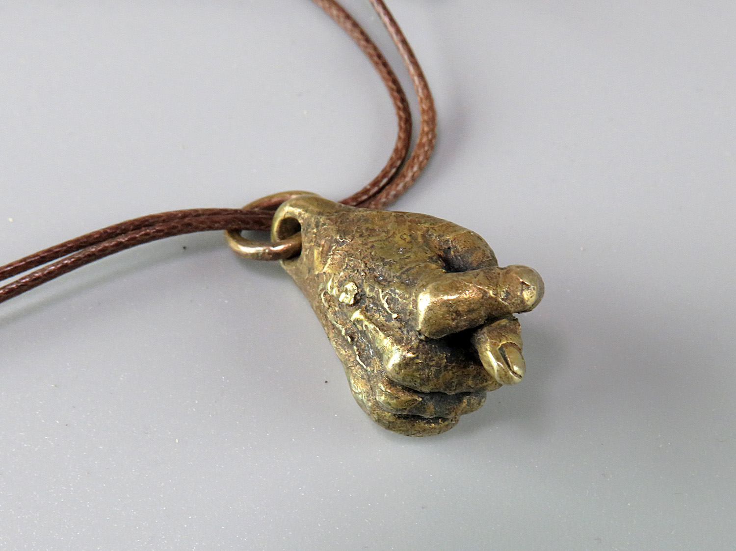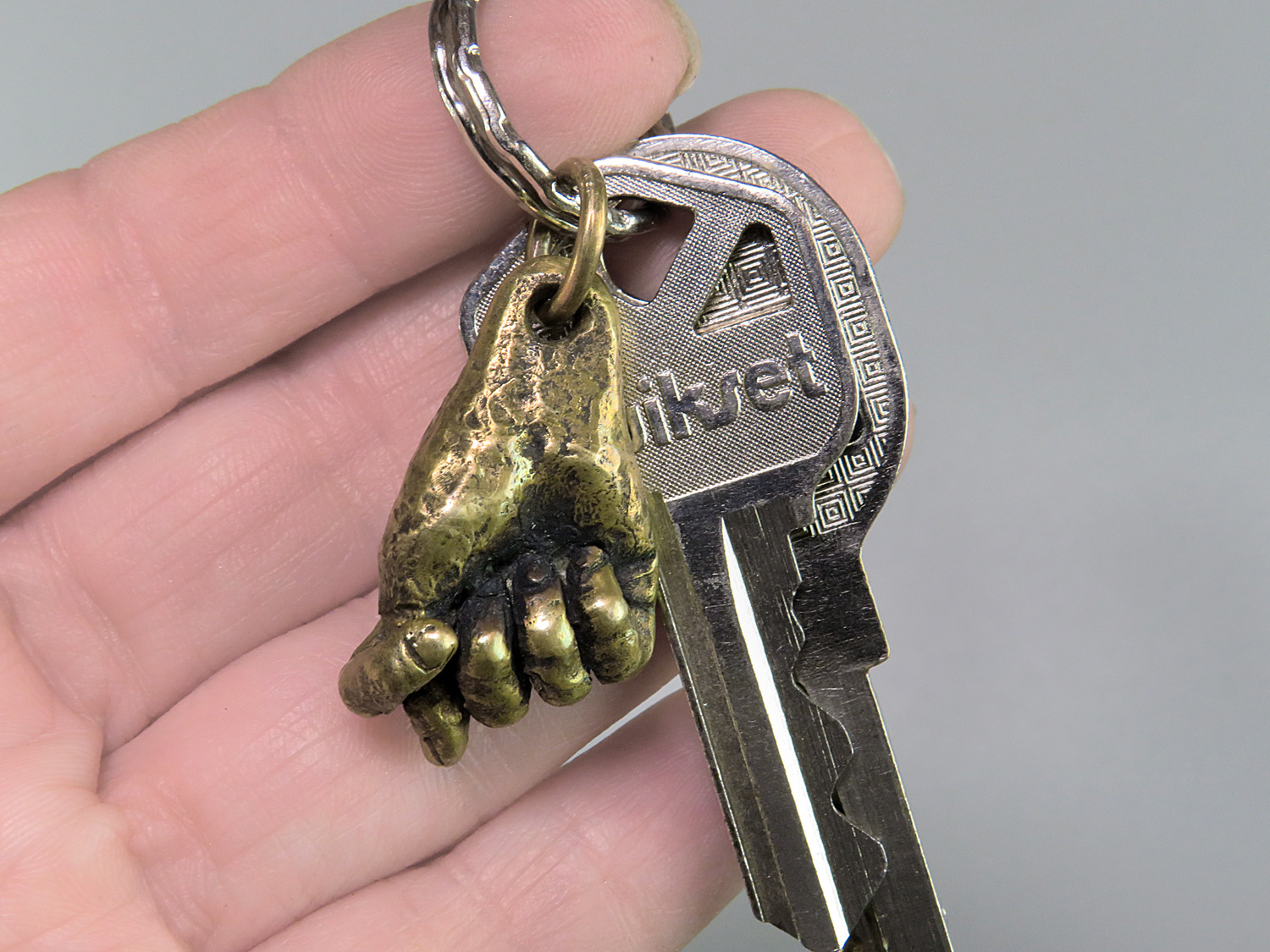 Bronze keychain in the form of a fig sign, a very versatile sign that means something different in different cultures, but always on the verge of decency.