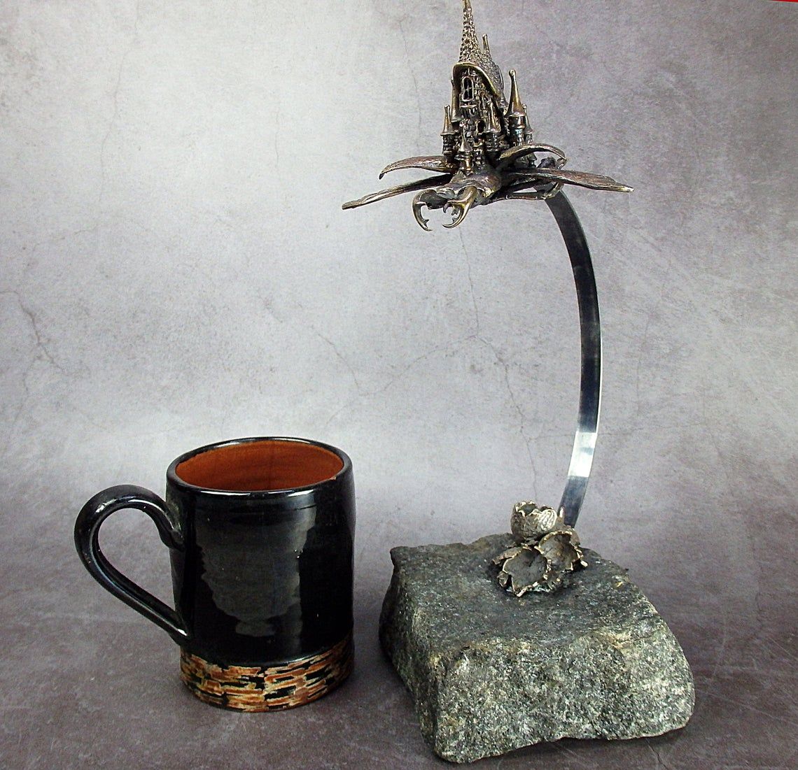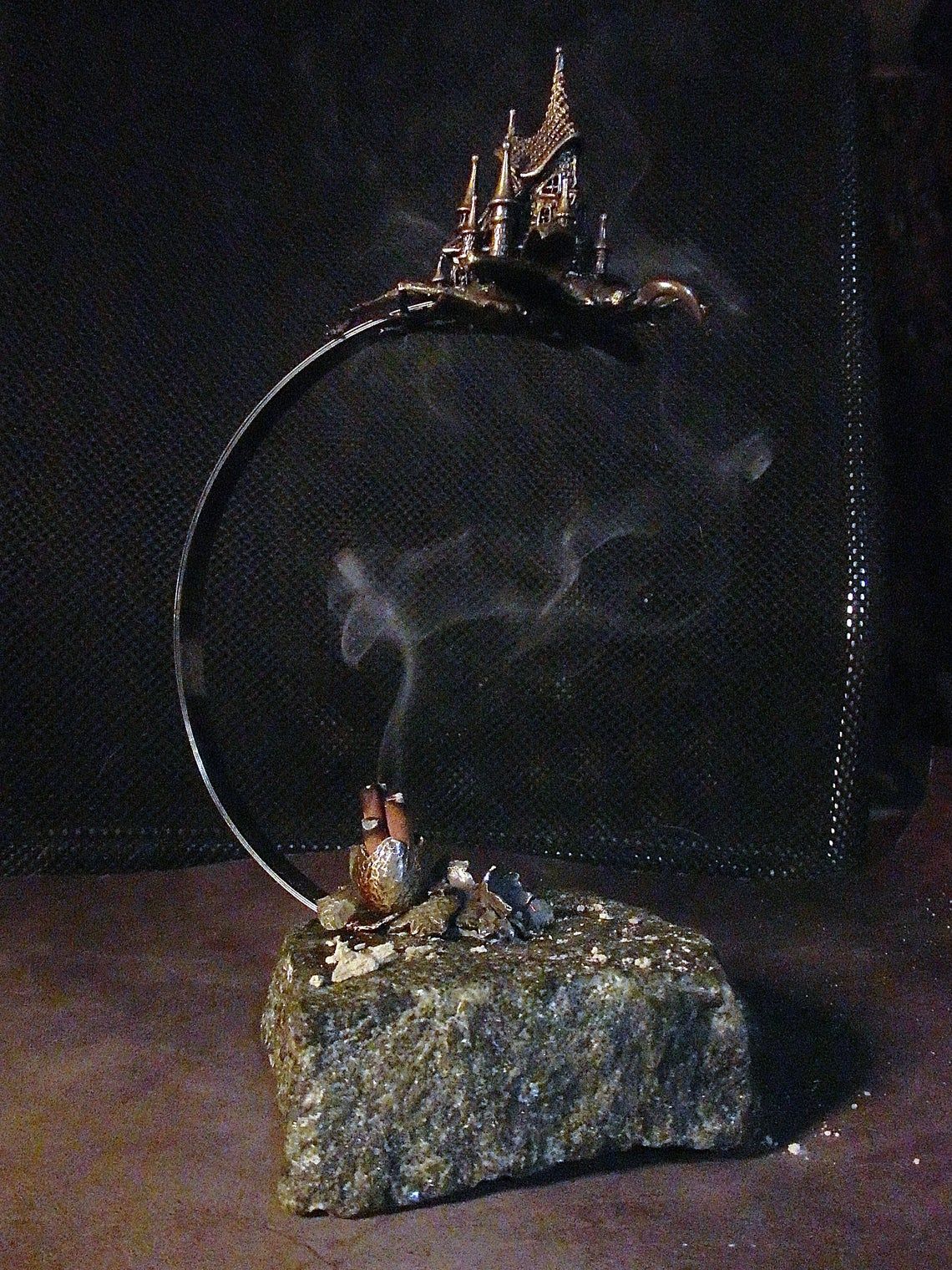 The beetle is attached with a long elastic plate and, if moved, will vibrate and sway, creating the illusion of flight. The shell fragments will serve as an excellent support for the smoke pyramids. And all together will create an unforgettable mood in your home.
