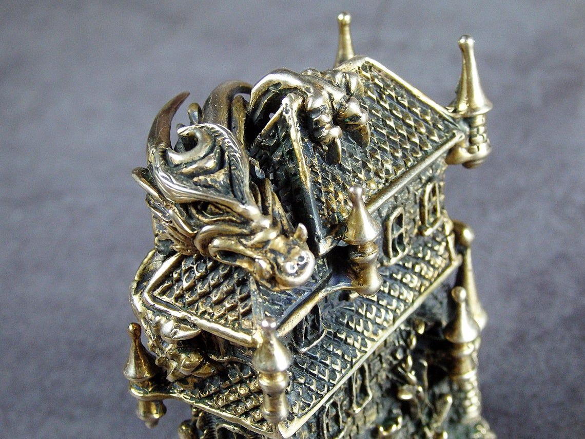 Gas lighter cover in the shape of an old house with a dragon on the roof. The cover is made so carefully that it is not only a smoking accessory, but also a wonderful souvenir. This will be a great theme gift for fans of role-playing games and lovers of the Middle Ages and Gothic.
