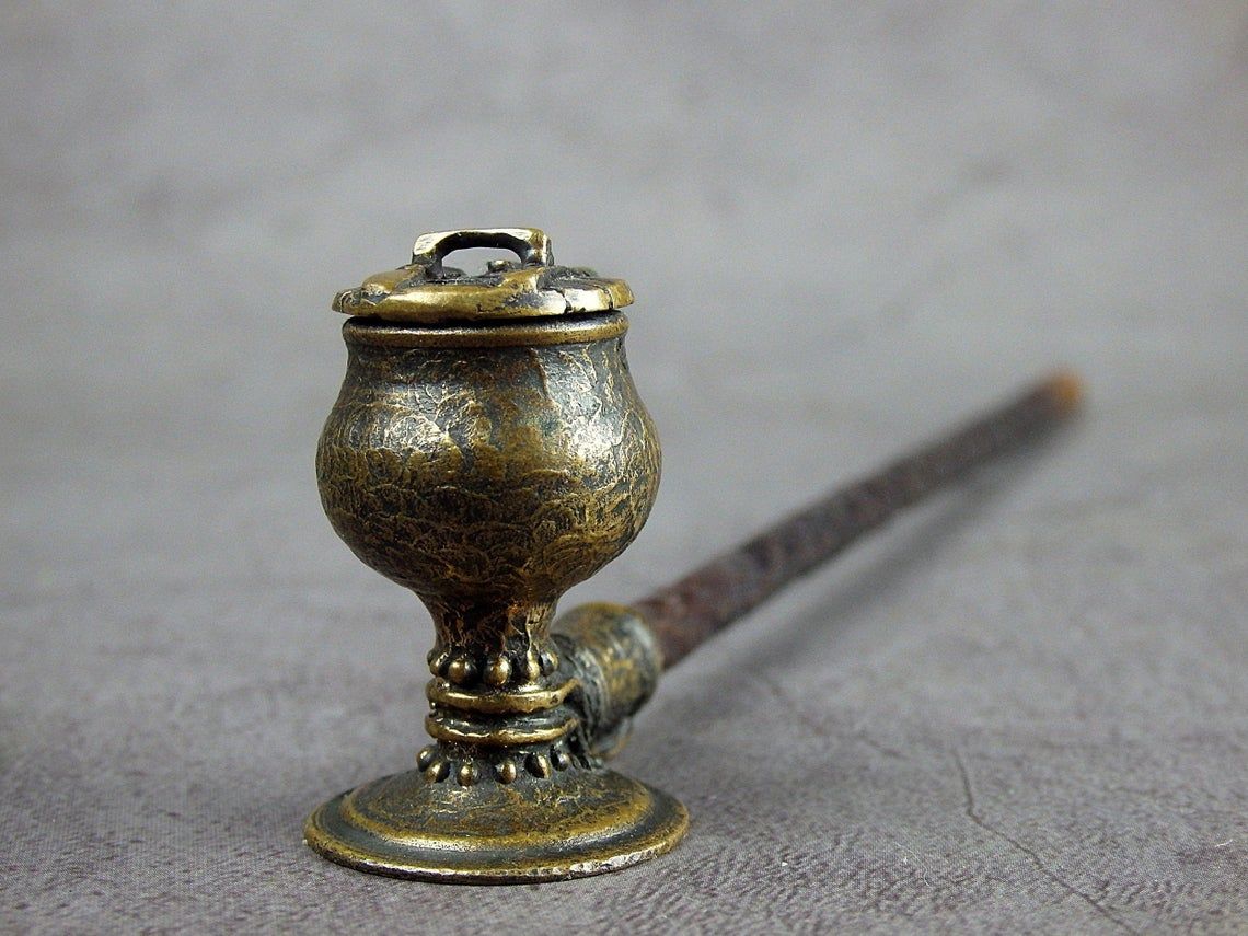 Handmade smoking pipe with lid. The mouthpiece is made of copper, it is screwed on, can have a length (from 3 to 30 cm) and a shape at the request of the buyer. The pipe is working, not decorative, the model is tested by the master.