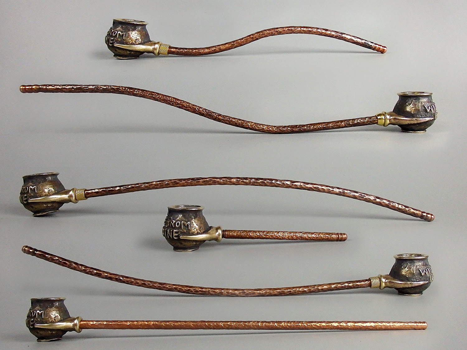 The mouthpiece is made of copper, it is screwed on, can have a length (from 3 to 30 cm) and a shape at the request of the buyer. The pipe is working, not decorative, the model is tested by the master.