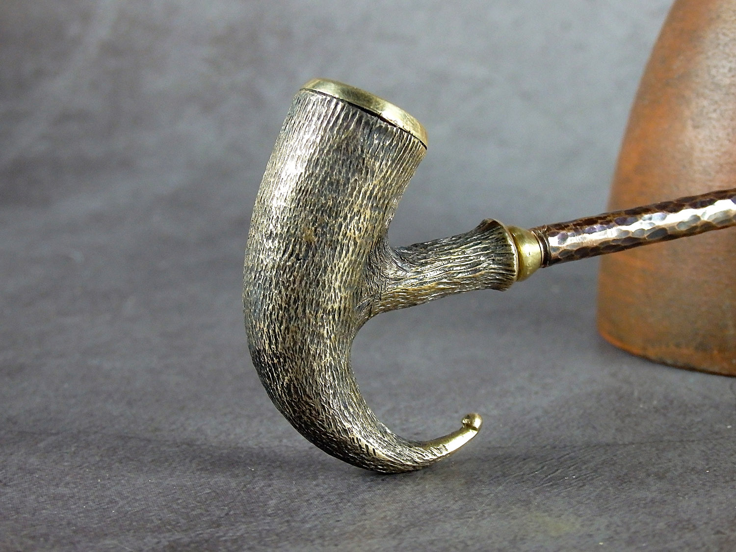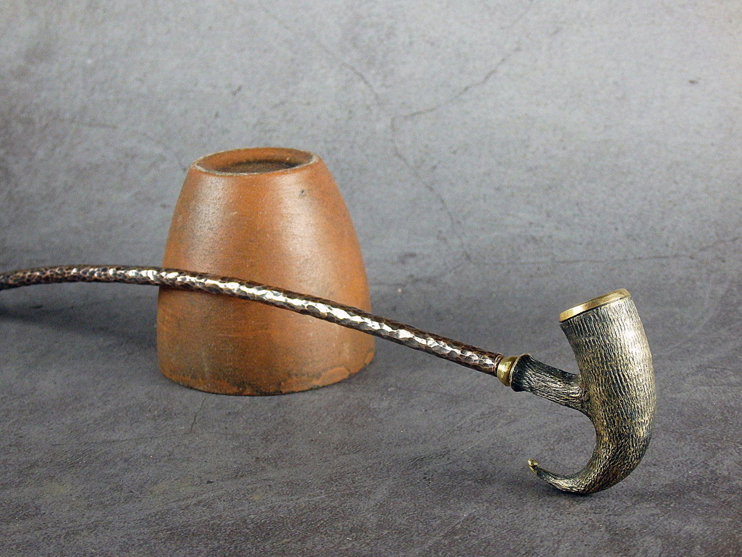 Freehand churchwarden bronze pipe with imitation of animal horn. The mouthpiece is made of copper, it is screwed on, can have a length (from 5 to 30 cm) and a shape at the request of the buyer. The pipe is working, not decorative, the model is tested by the master.