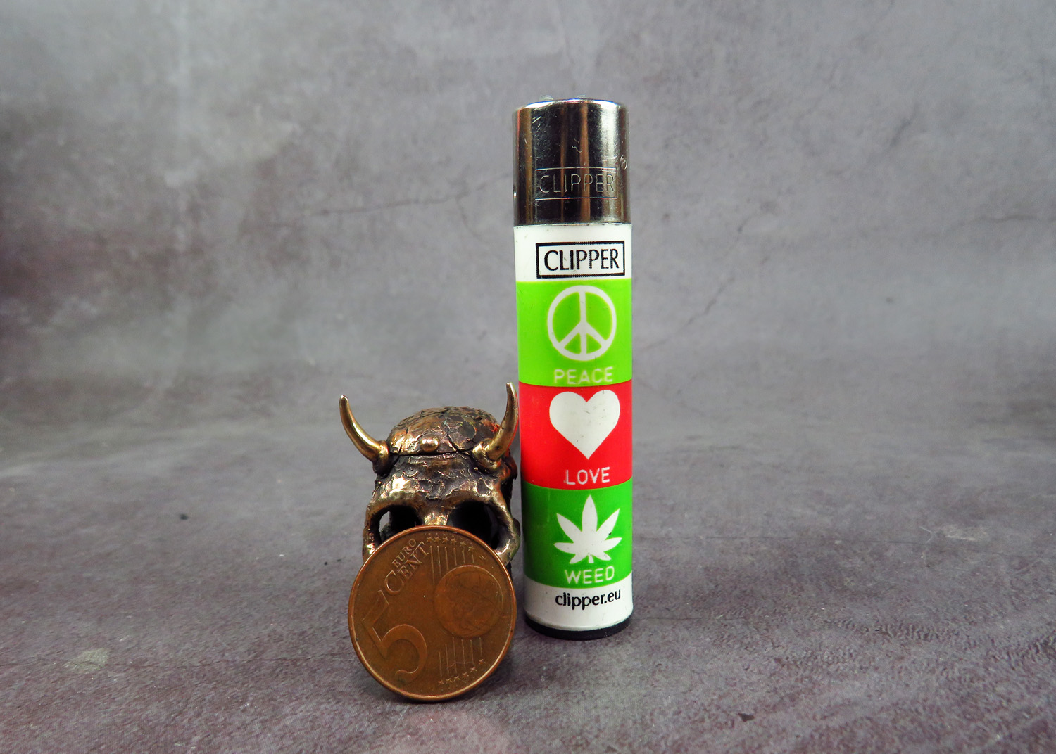 The skull is made by hand (without using computer technology) from bronze according to the author's sketch.