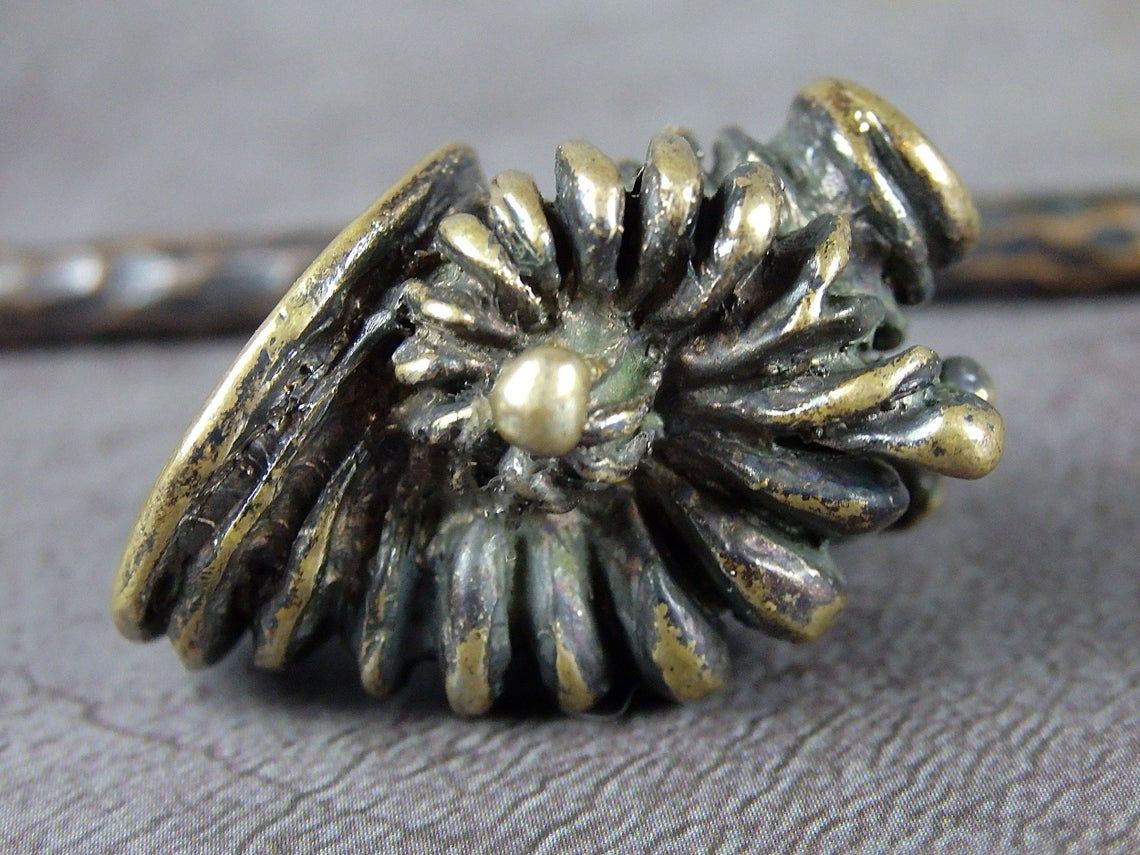 To make this item, a wax model was cut out by hand. Then, using the lost wax method, bronze parts were cast.