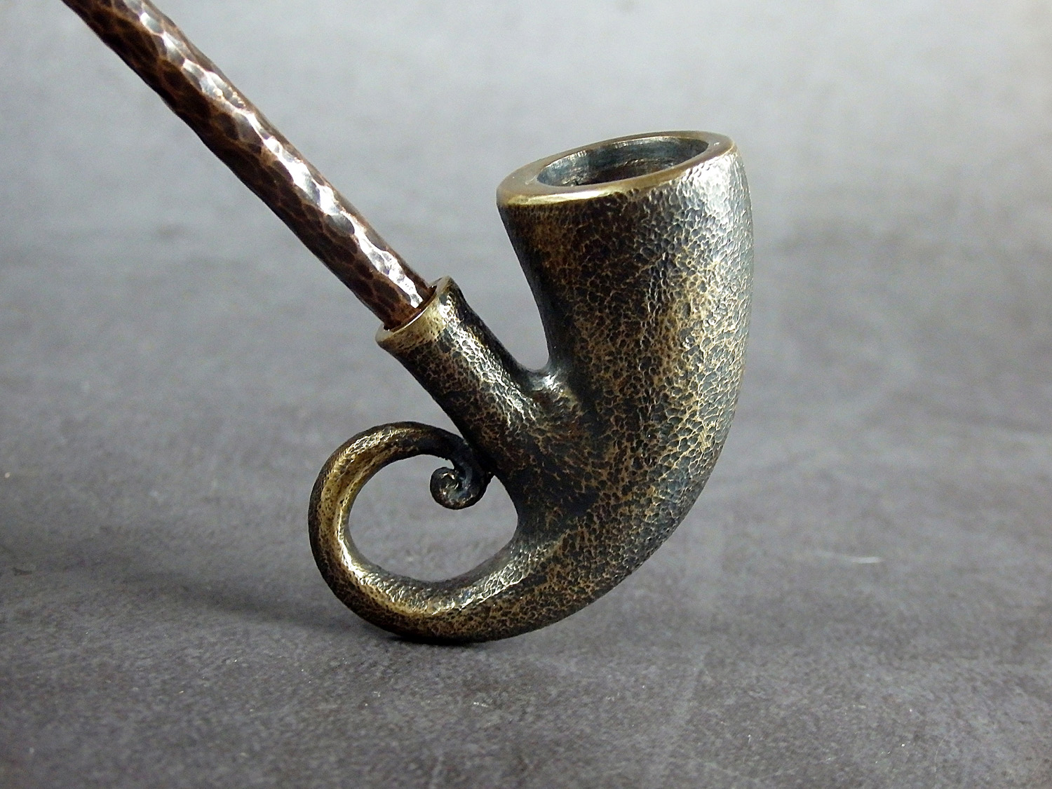 The pipe is made by hand (without using computer technology) from bronze according to the author's sketch.