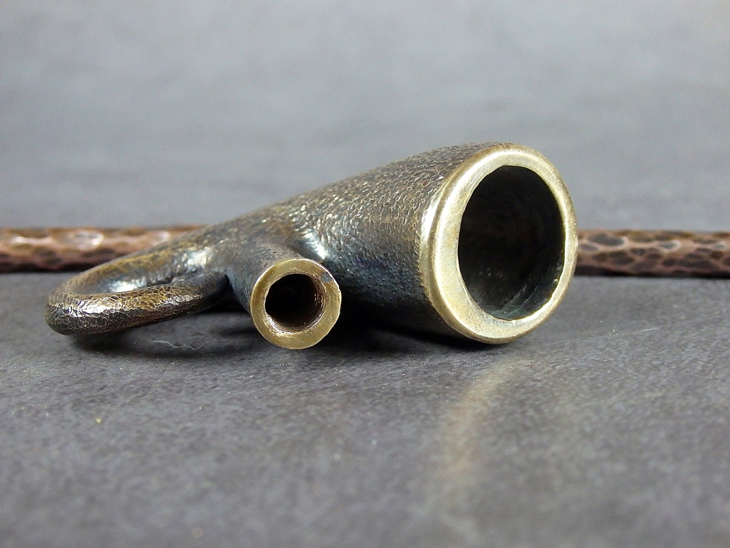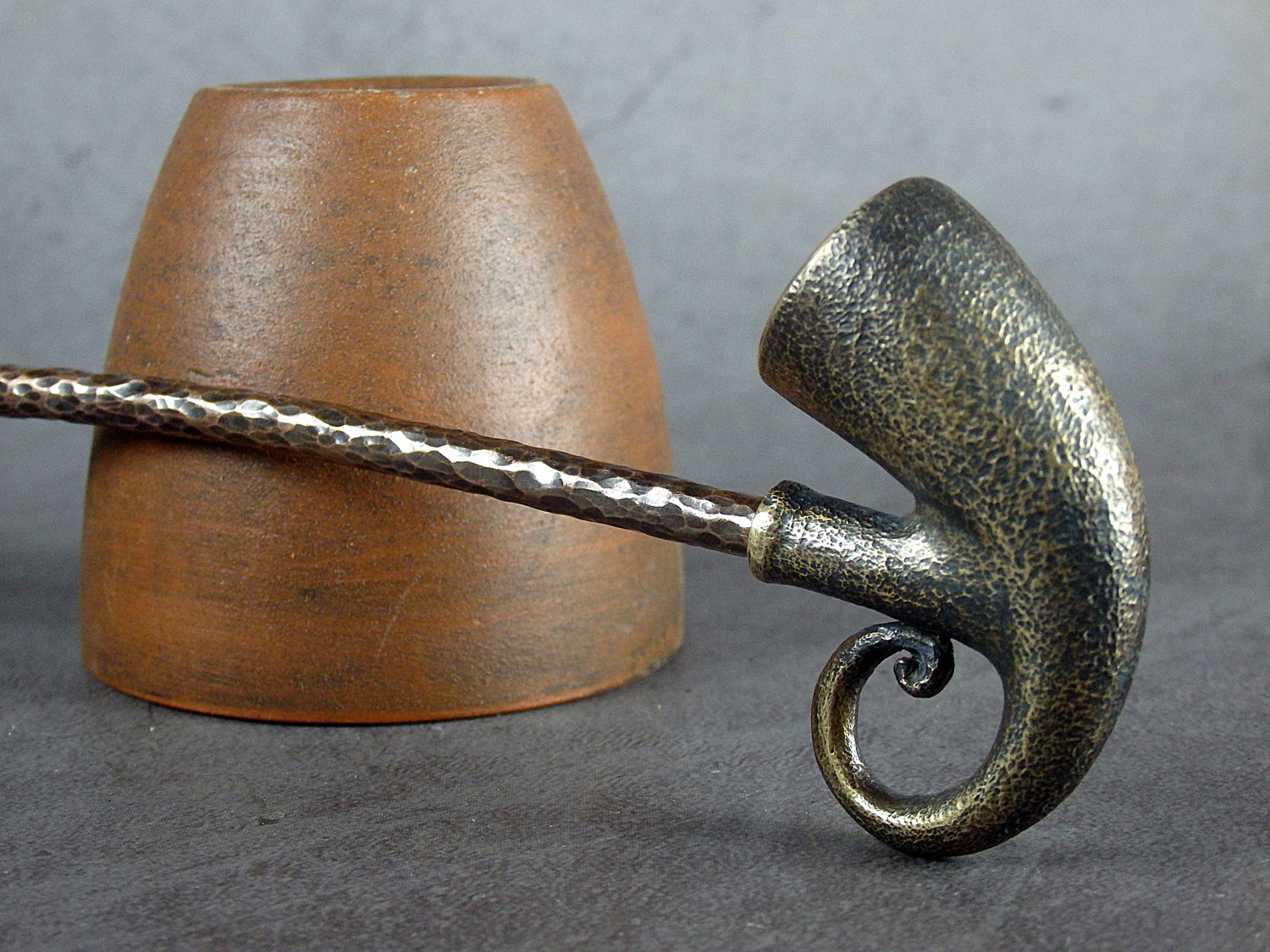 Freehand churchwarden bronze pipe shaped hunting horn. The mouthpiece is made of copper, it is screwed on, can have a length (from 5 to 30 cm) and a shape at the request of the buyer. The pipe is working, not decorative, the model is tested by the master.