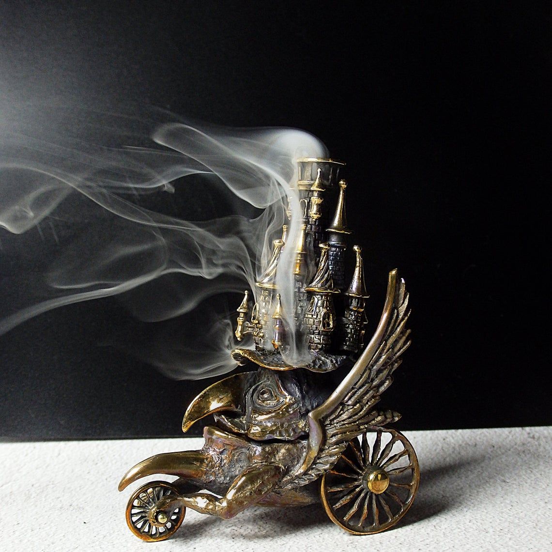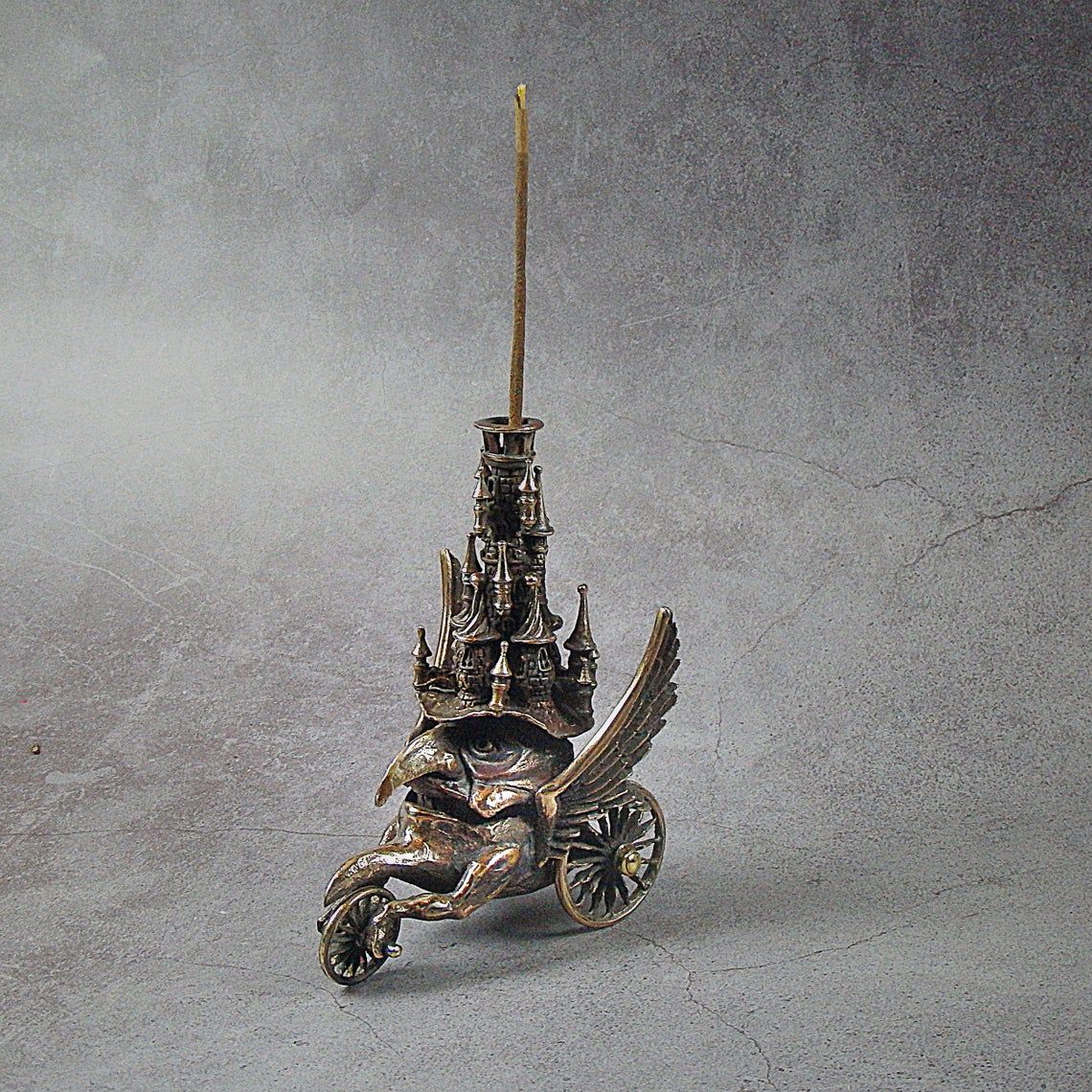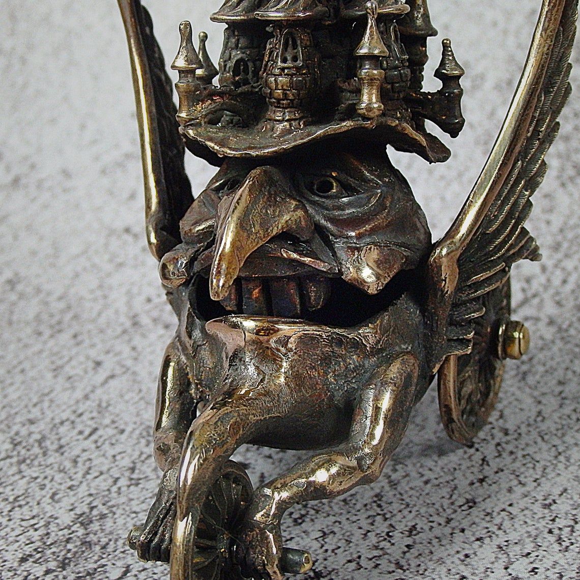 This surreal bronze item can perform different functions. It can be used as a holder for incense sticks or pyramids, as a fun piggy bank or a small desktop waste basket. Tobacco lovers can use it instead of an ashtray, and jewelry owners - as a storehouse for jewelry or small items.