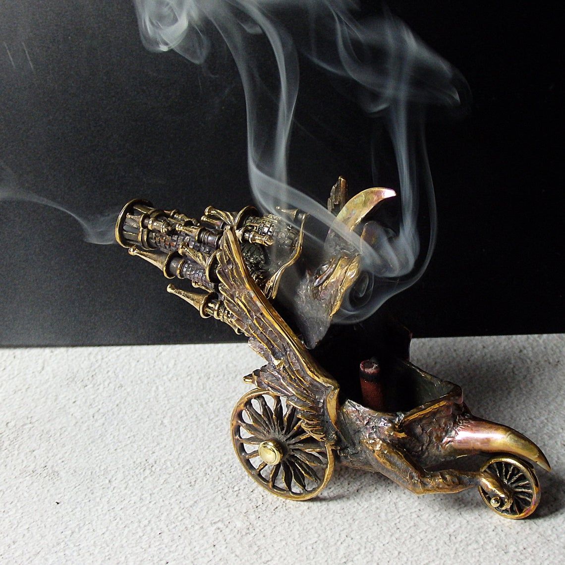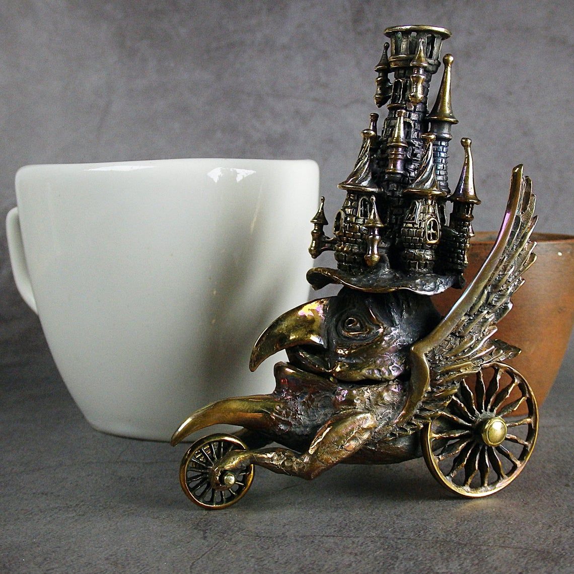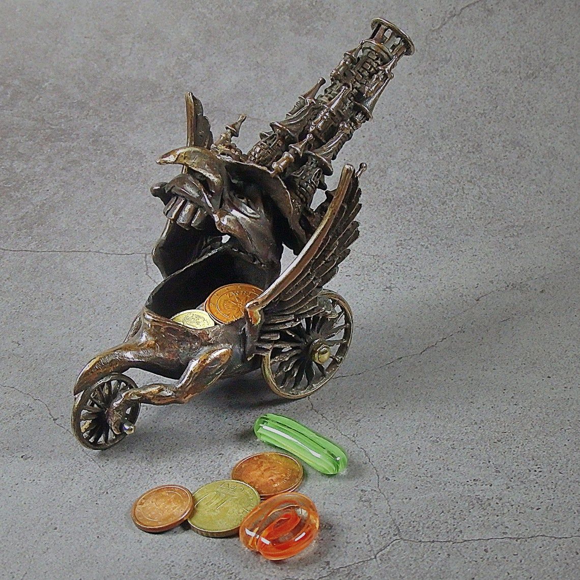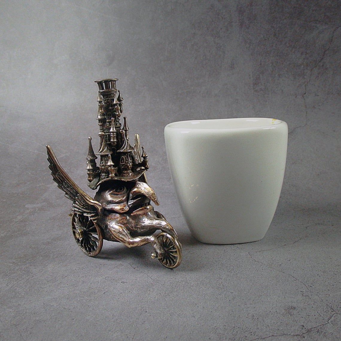 This surreal bronze item can perform different functions. It can be used as a holder for incense sticks or pyramids, as a fun piggy bank or a small desktop waste basket. Tobacco lovers can use it instead of an ashtray, and jewelry owners - as a storehouse for jewelry or small items.