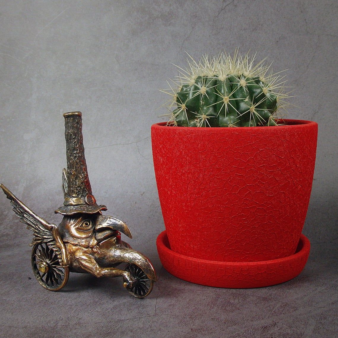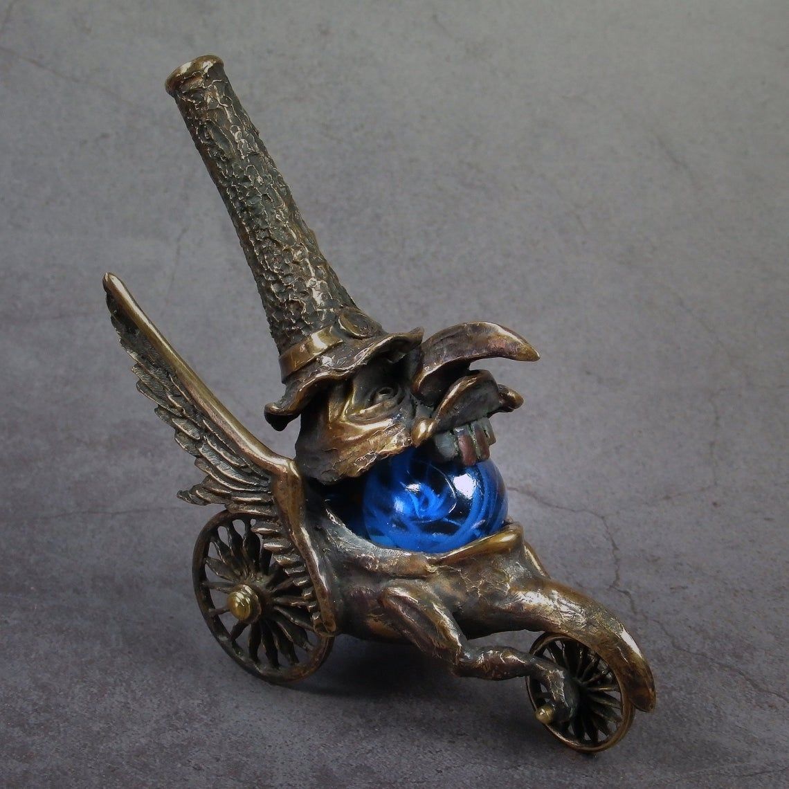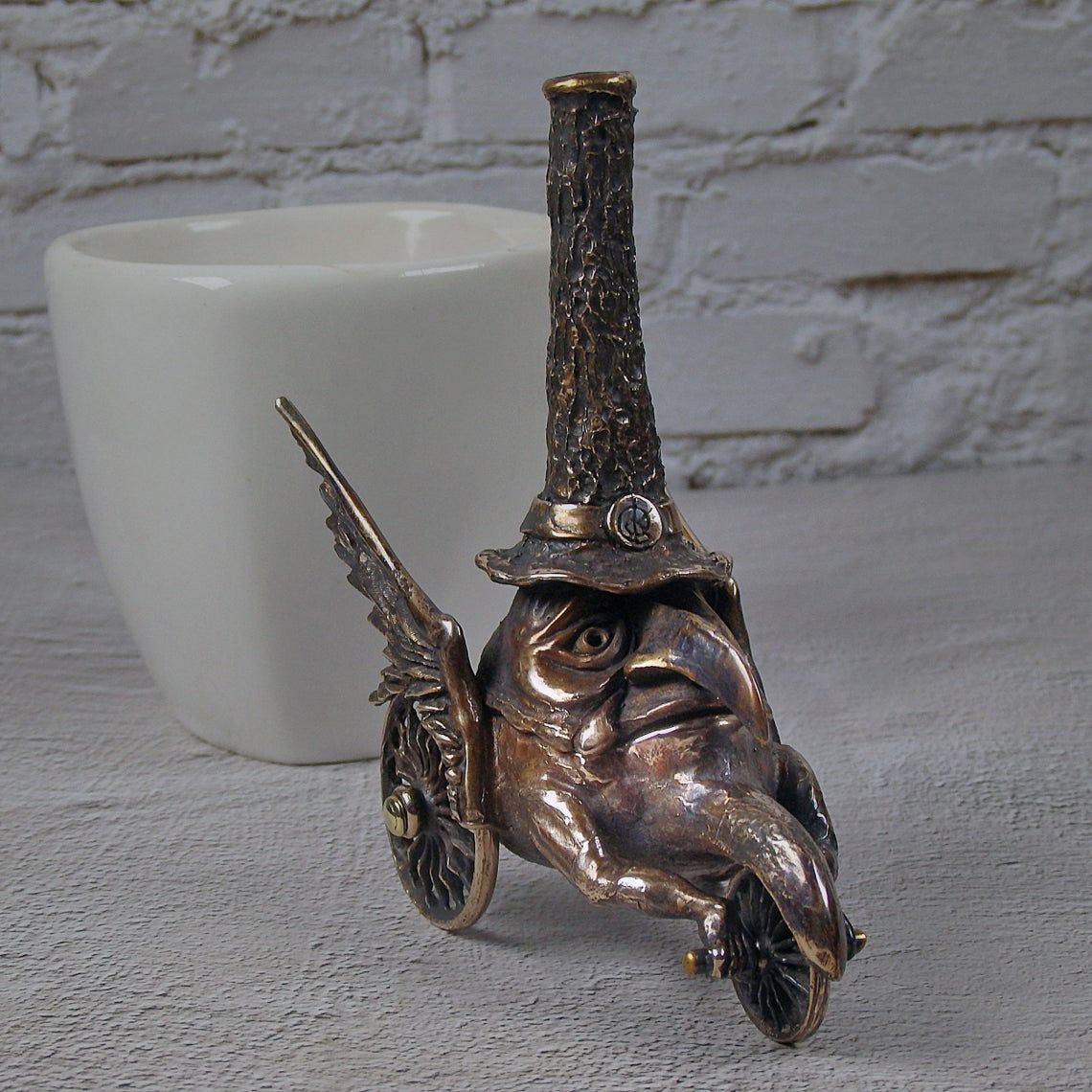 This surreal bronze thing on wheels can perform different functions. It can be used as a holder for incense sticks or pyramids, as a fun piggy bank or a small desktop waste basket. Tobacco lovers can use it instead of an ashtray, and jewelry owners - as a storehouse for jewelry or small items.