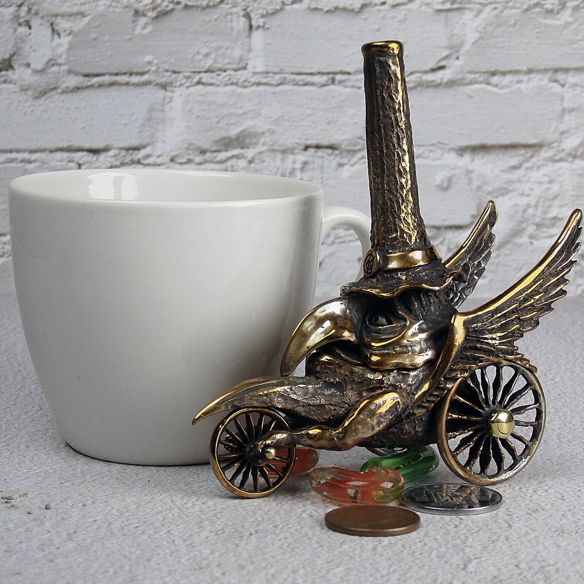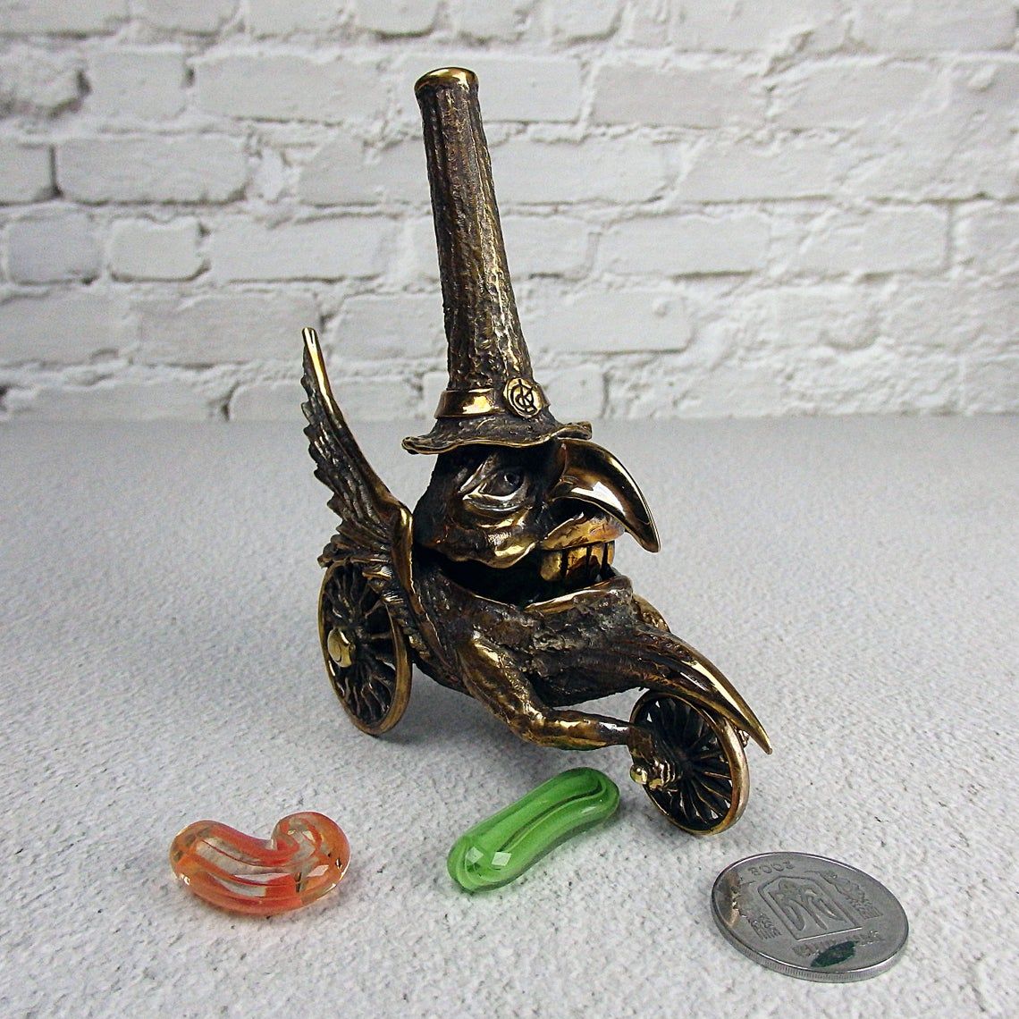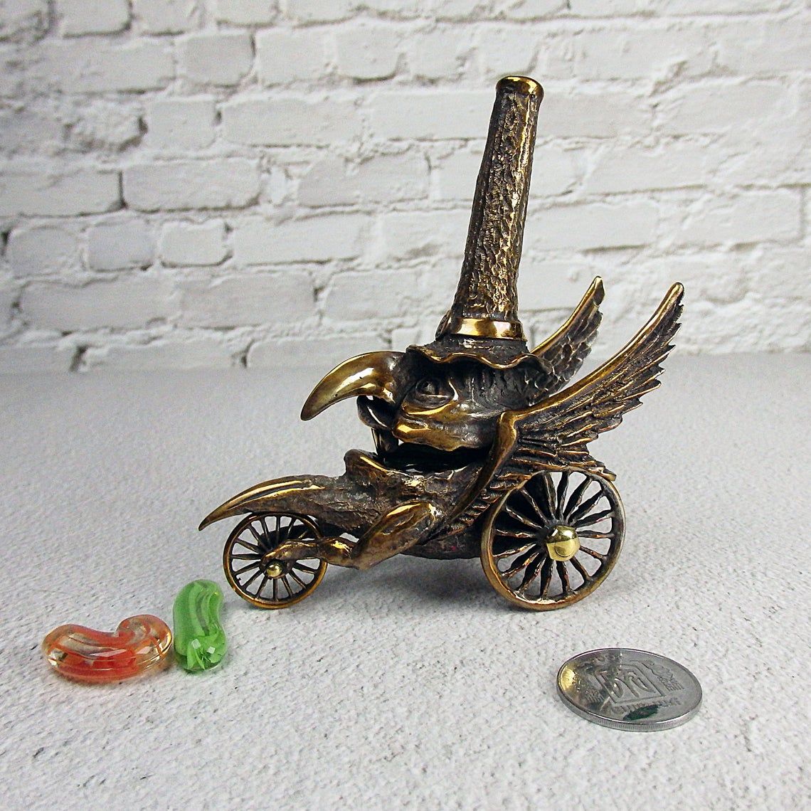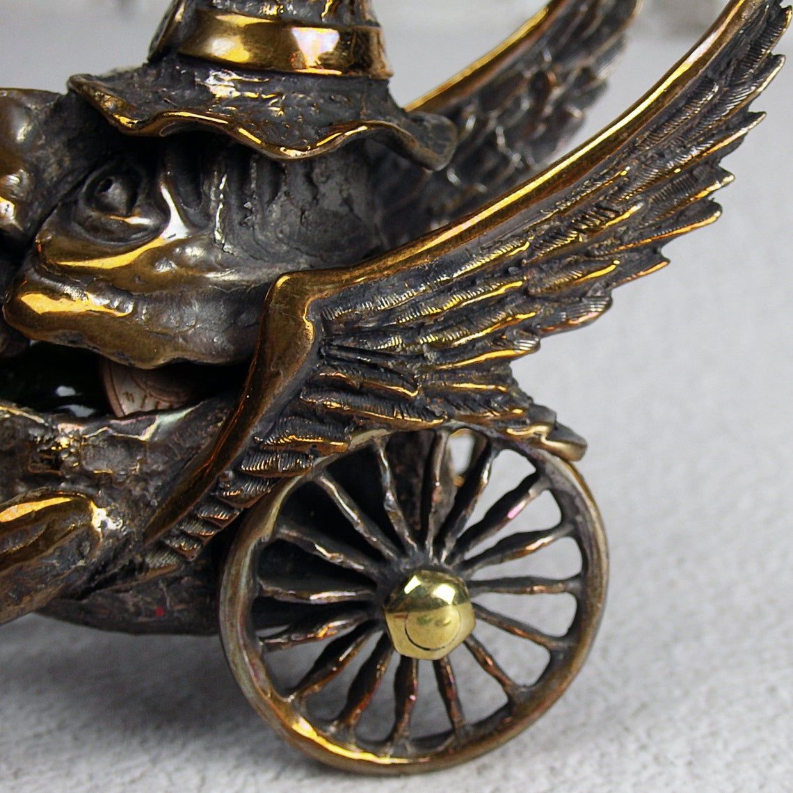This surreal bronze thing on wheels can perform different functions. It can be used as a holder for incense sticks or pyramids, as a fun piggy bank or a small desktop waste basket. Tobacco lovers can use it instead of an ashtray, and jewelry owners - as a storehouse for jewelry or small items.