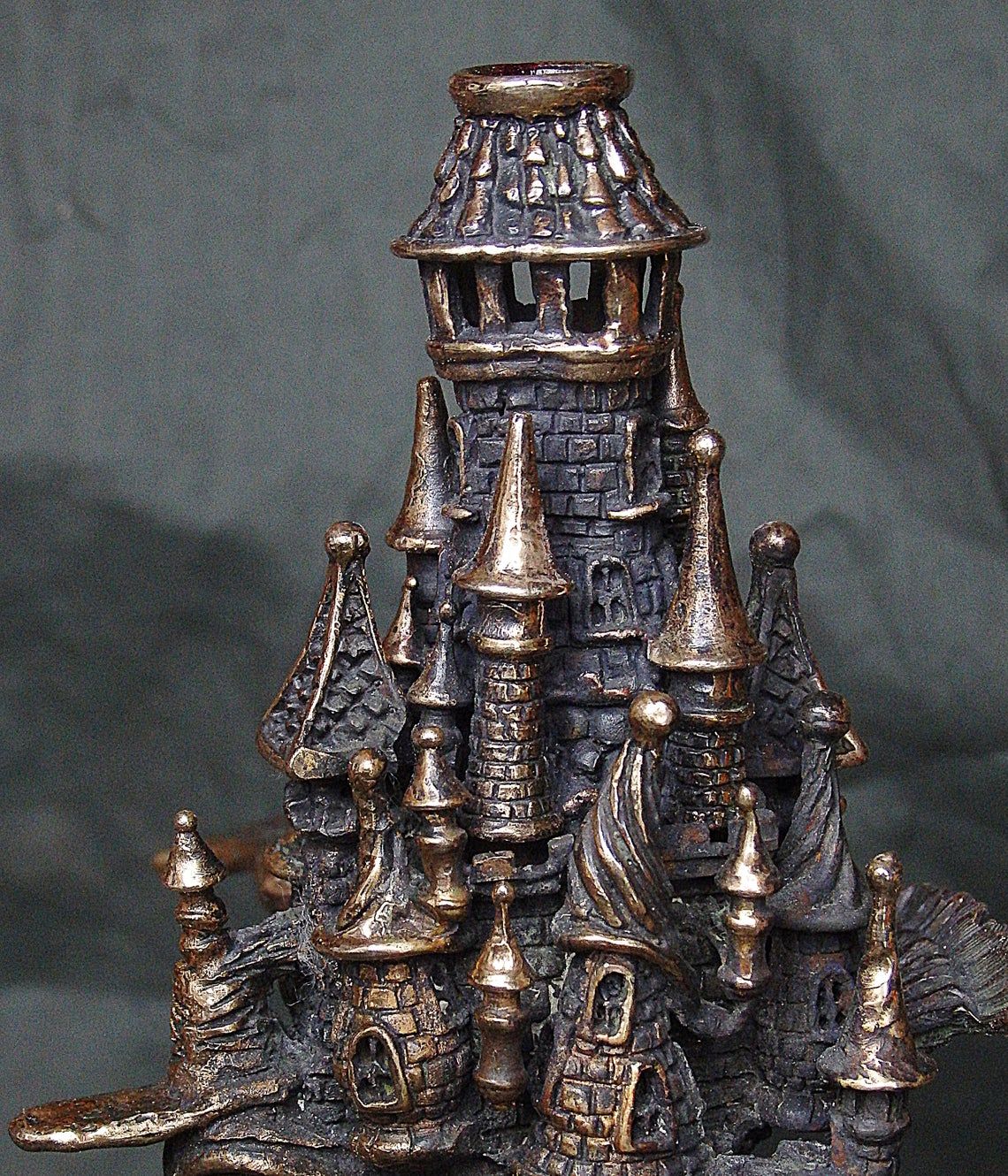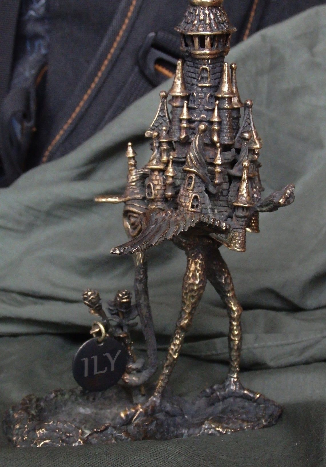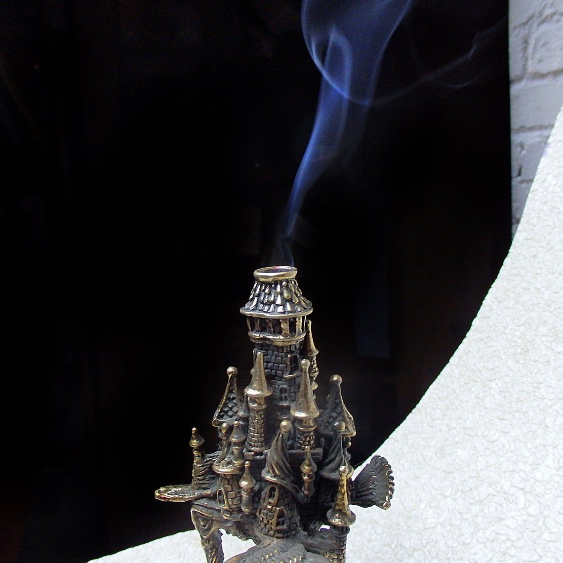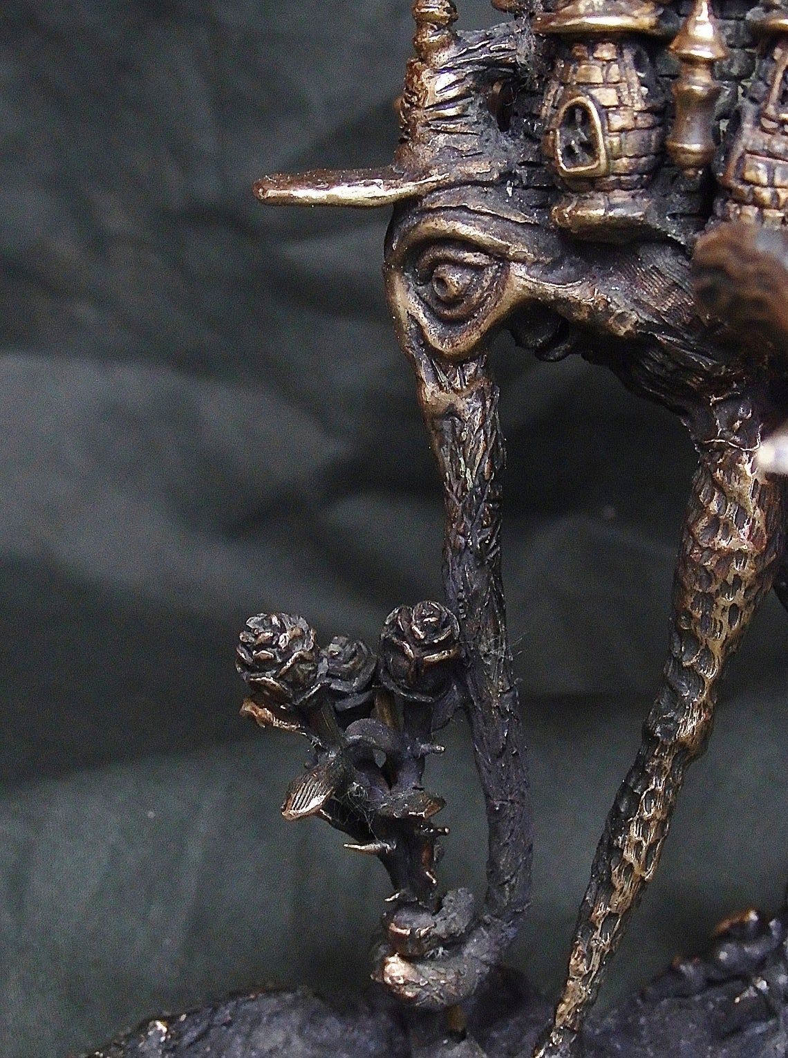 Unusual bronze incense stick holder. Surprising mixture romance, mystique and frightening tale - a strange bird-chimera with an elephant's trunk, sad eyes of a human, and with towers on the back. This is a very strange thing, a thing of the mood, and it will not leave you indifferent.