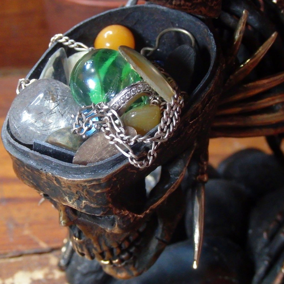 This creature will be an amazing desktop souvenir with a secret - you can hide many different trifles in its opening skull.